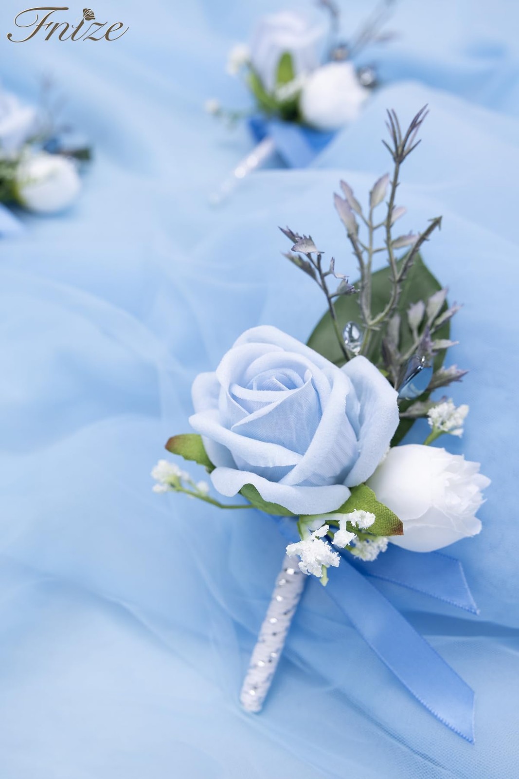 Blue Boutonniere For Men 6 PCS Groom Groomsmen Artificial Flowers Wedding Prom