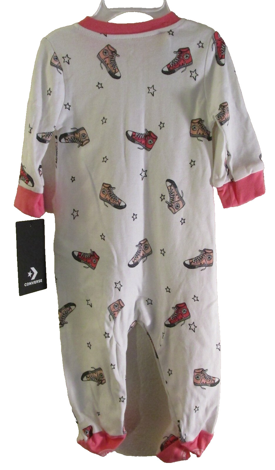 NWT Converse Infant Baby Girls Footed Coverall 6 Months White/Pink