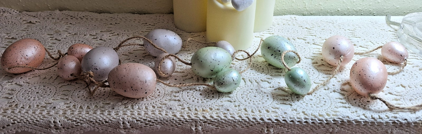 Easter Egg Garland Speckled Pearlized Pink Green Gray 72 Inches NEW