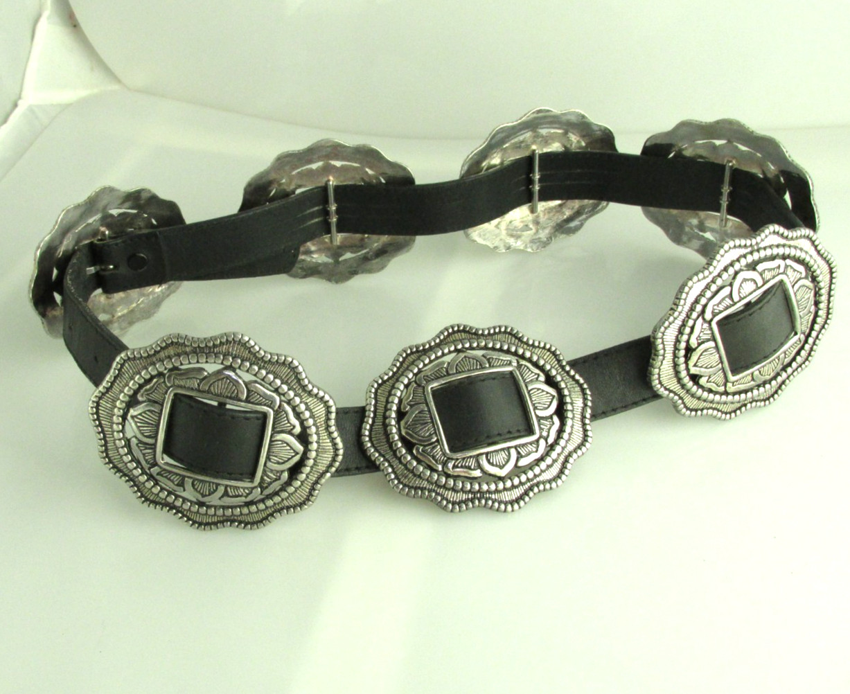 Large Concho Black Leather Womens Belt Western Cowgirl Sunflower Medium 28 30 32