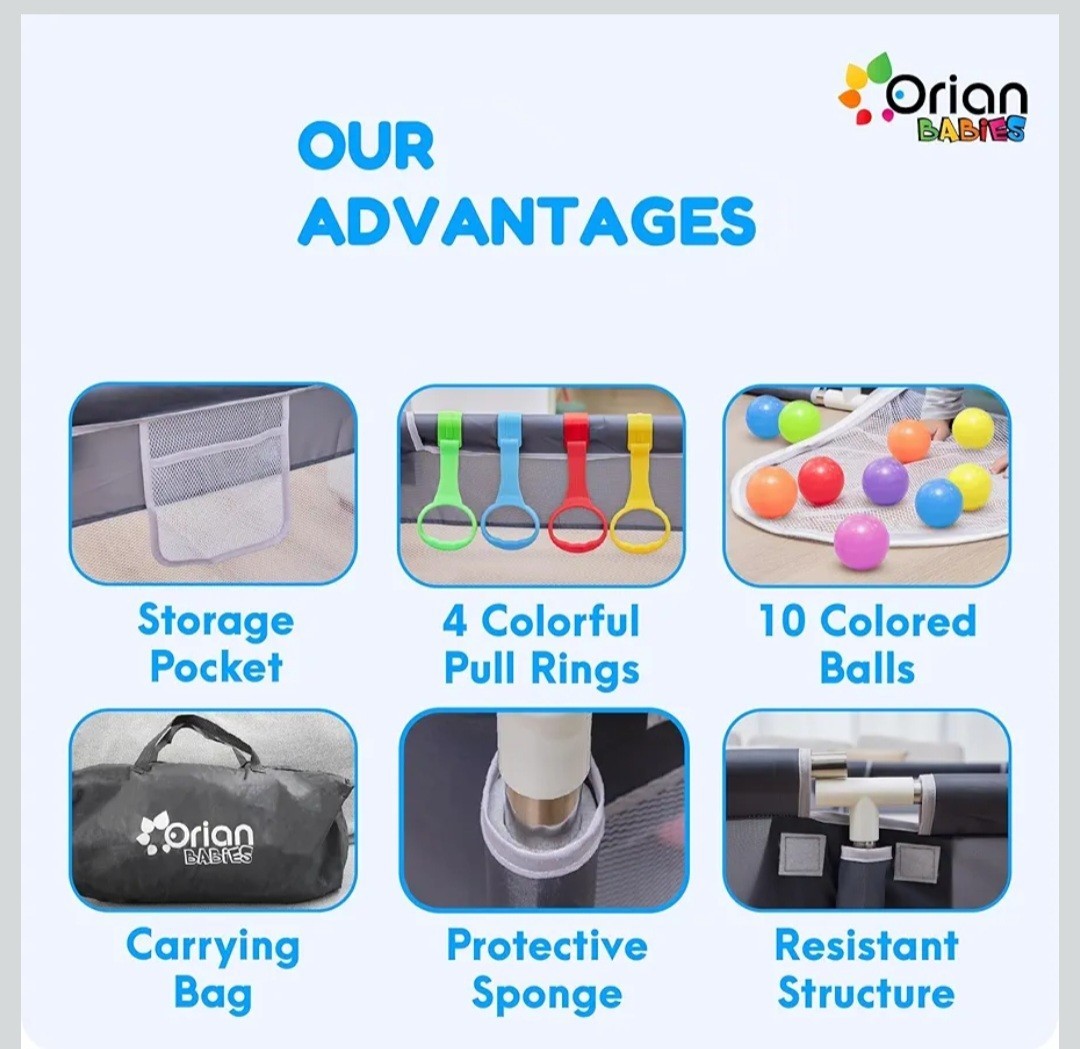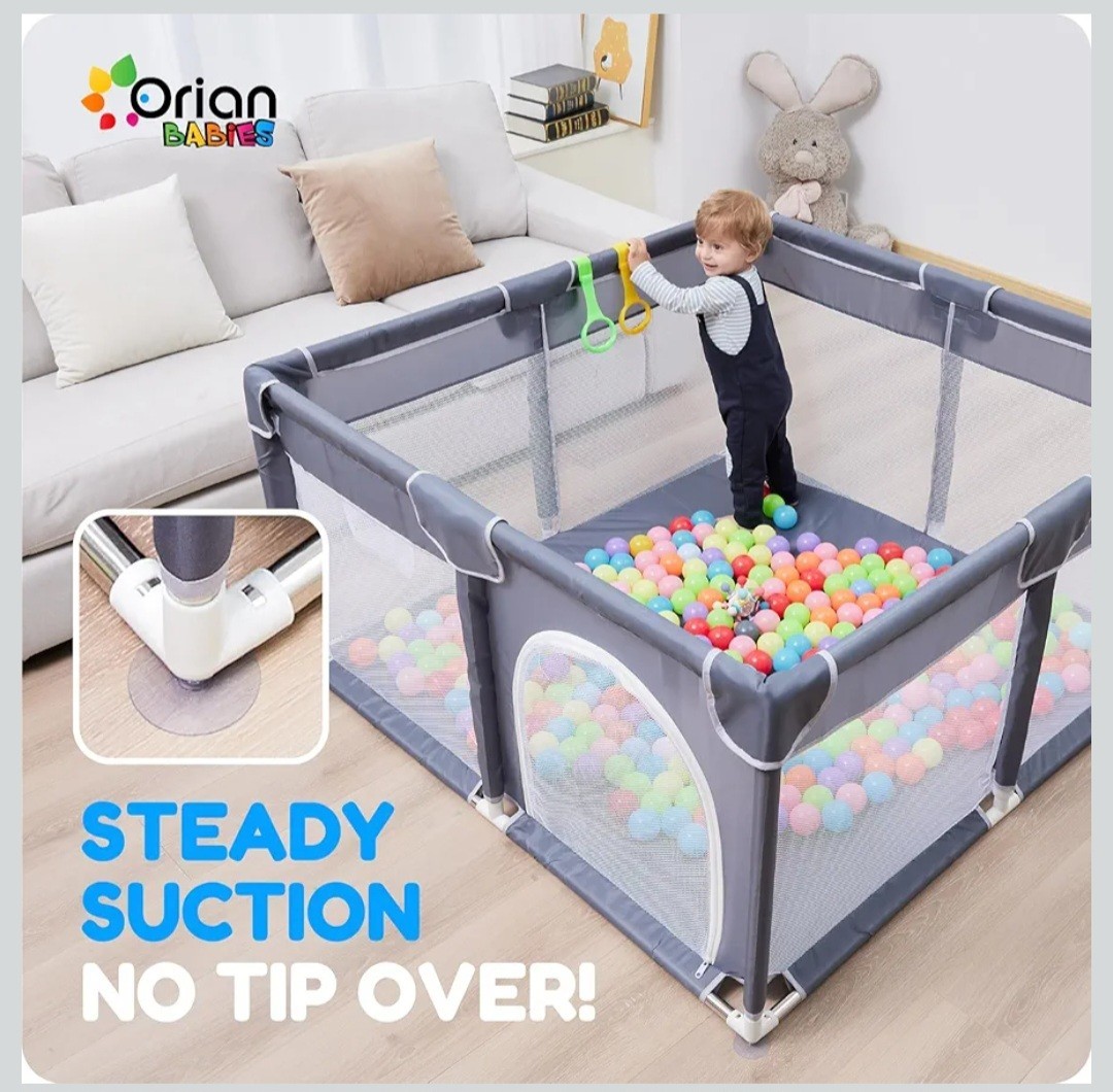 Large Baby Playpen 50x50 Indoor/Outdoor 10 Balls 4 Pull Rings Carry Bag