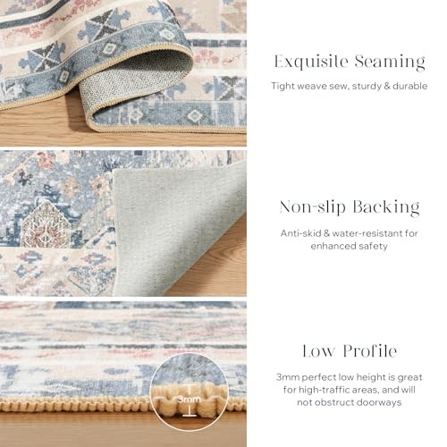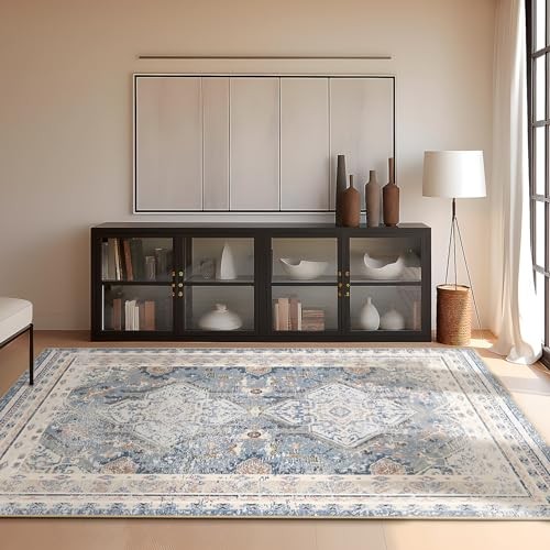 Washable Area Rug 5'x7' Non-Slip, Vintage Neutral Rugs for Living Room,