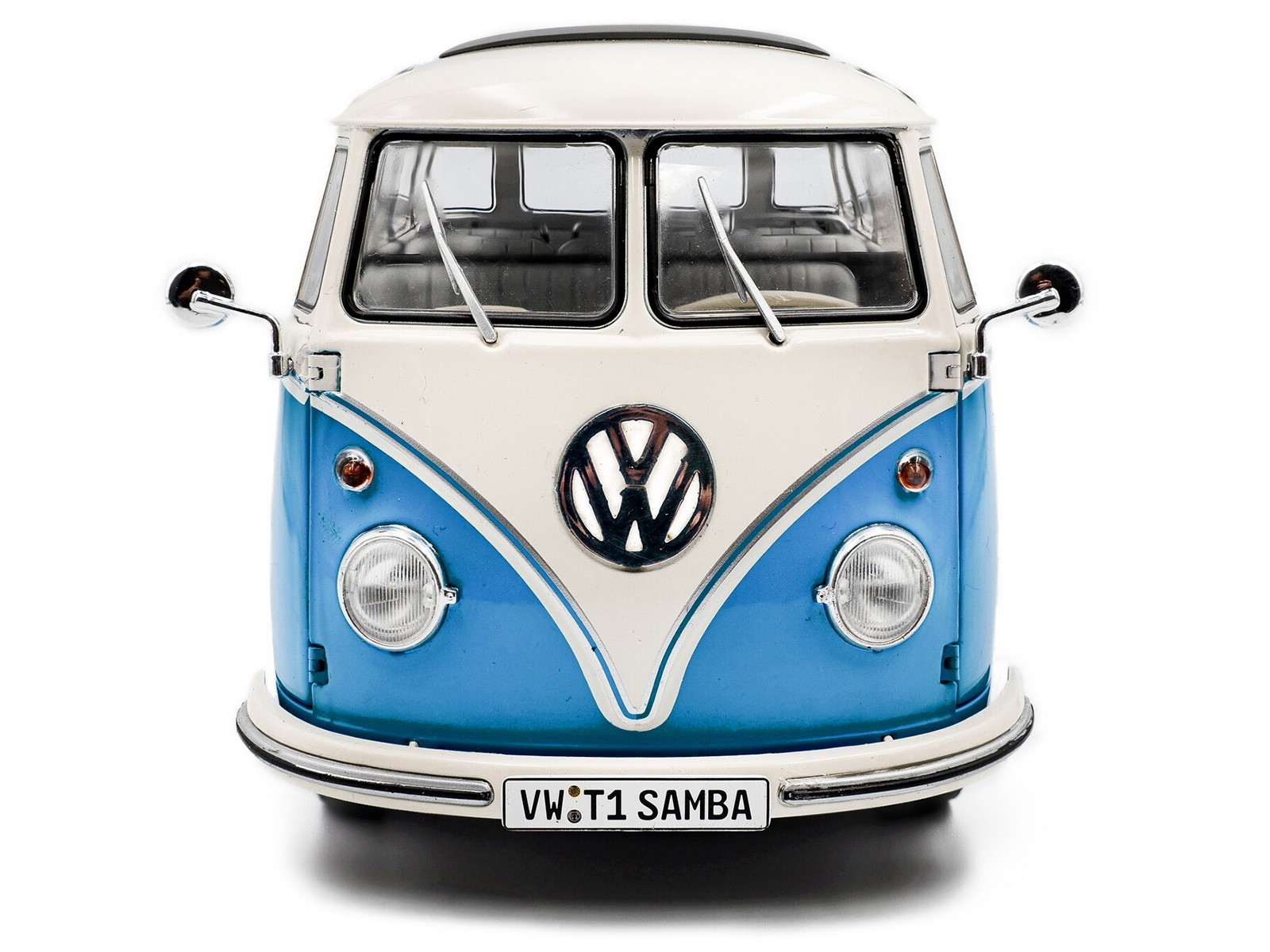 1962 VOLKSWAGEN T1 SAMBA BUS BABY BLUE WHITE 1/18 DIECAST BY SOLIDO S1813401