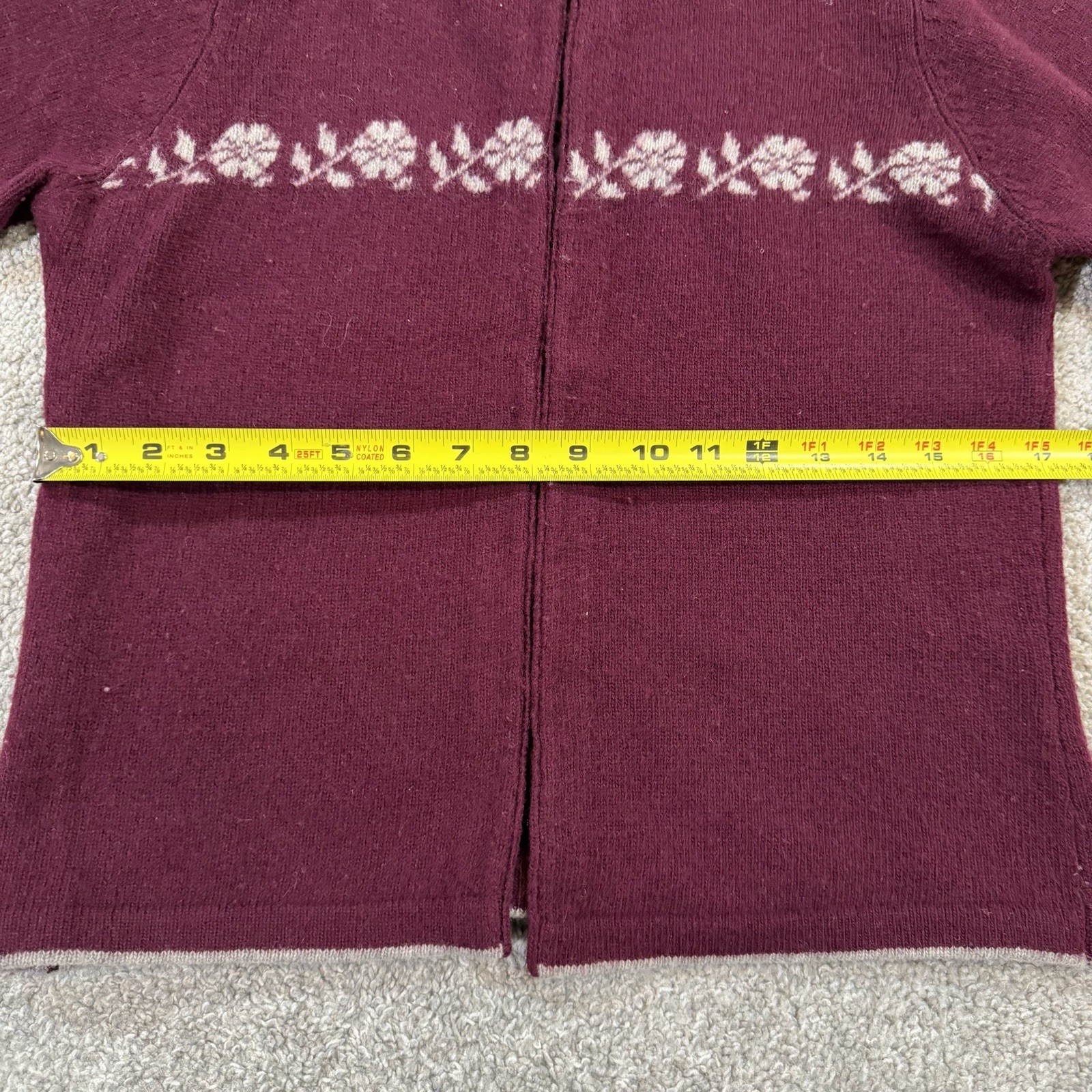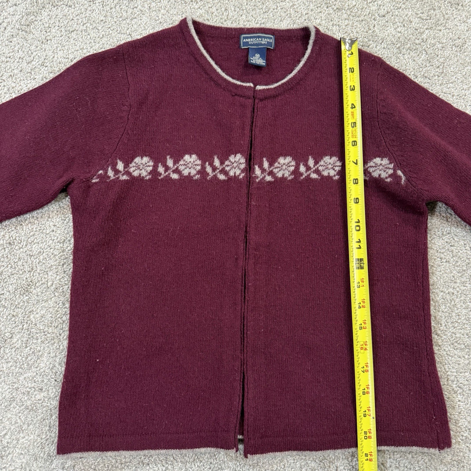 как выглядит American Eagle Lambswool Cardigan Sweater M Burgundy Floral Knit Button VTG фото