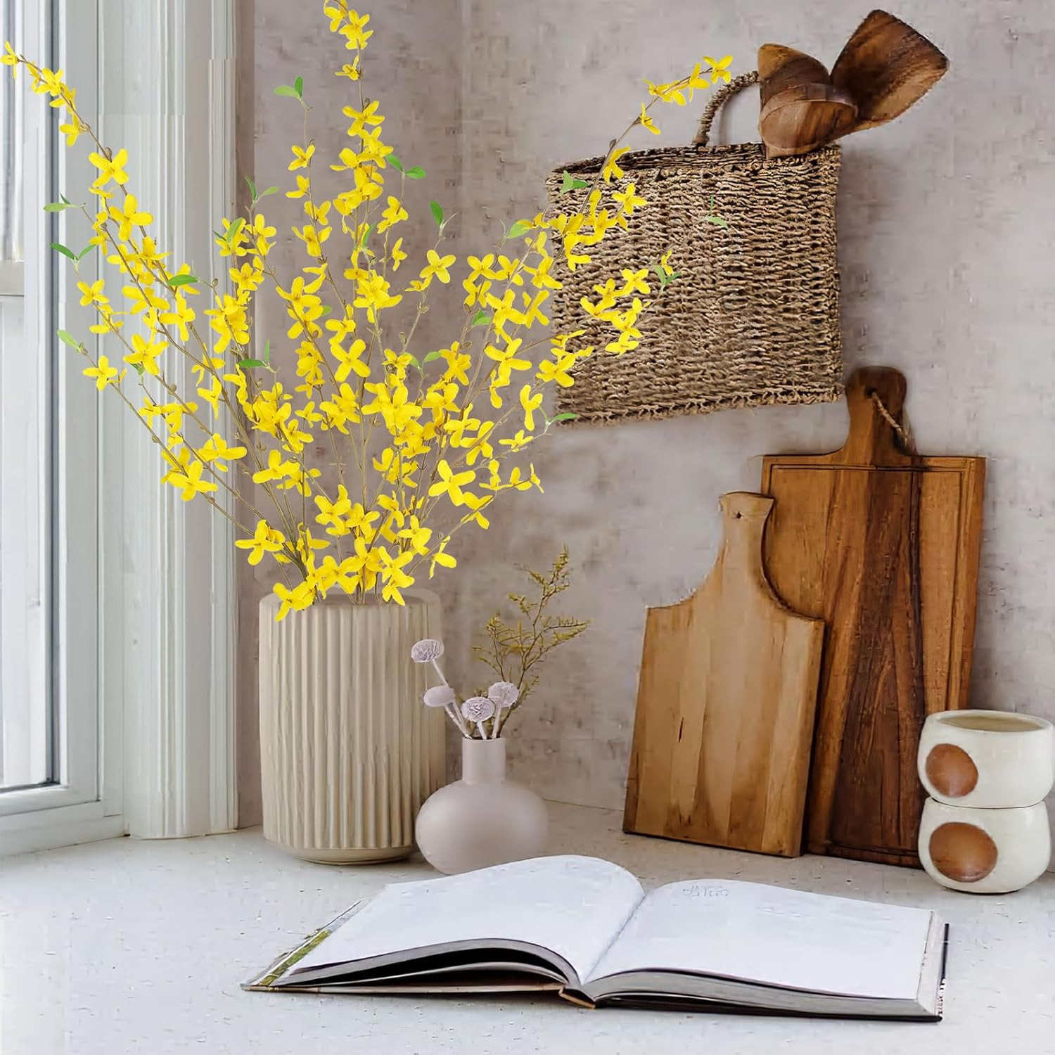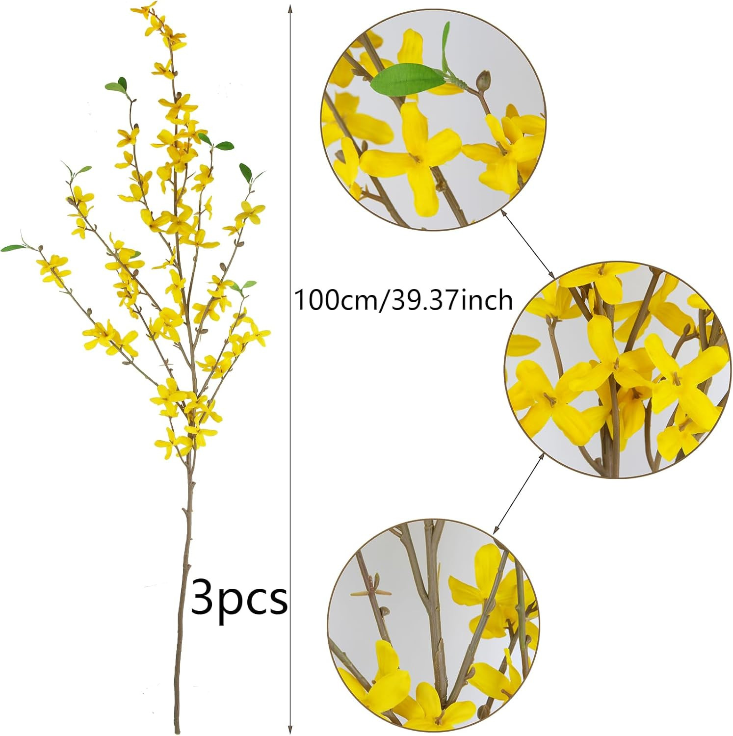 3 Pcs Artificial Forsythia Flower Branches Artificial Flowers Yellow Silk Long S