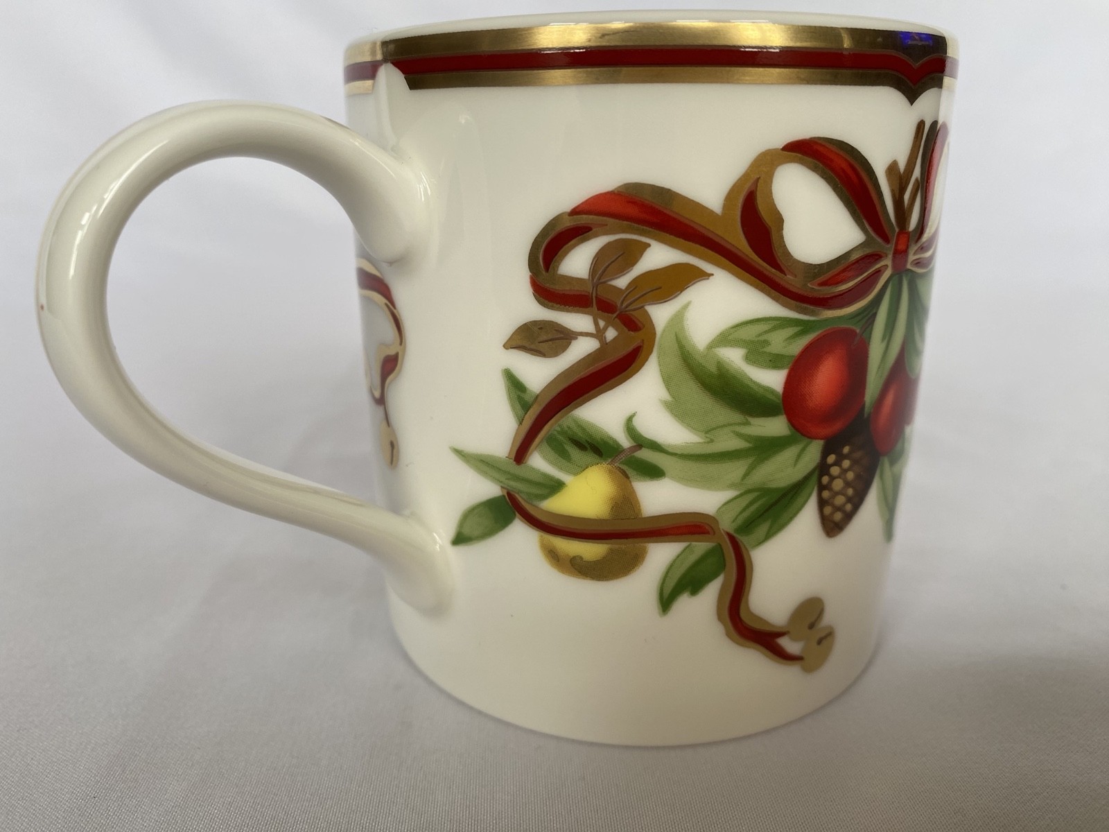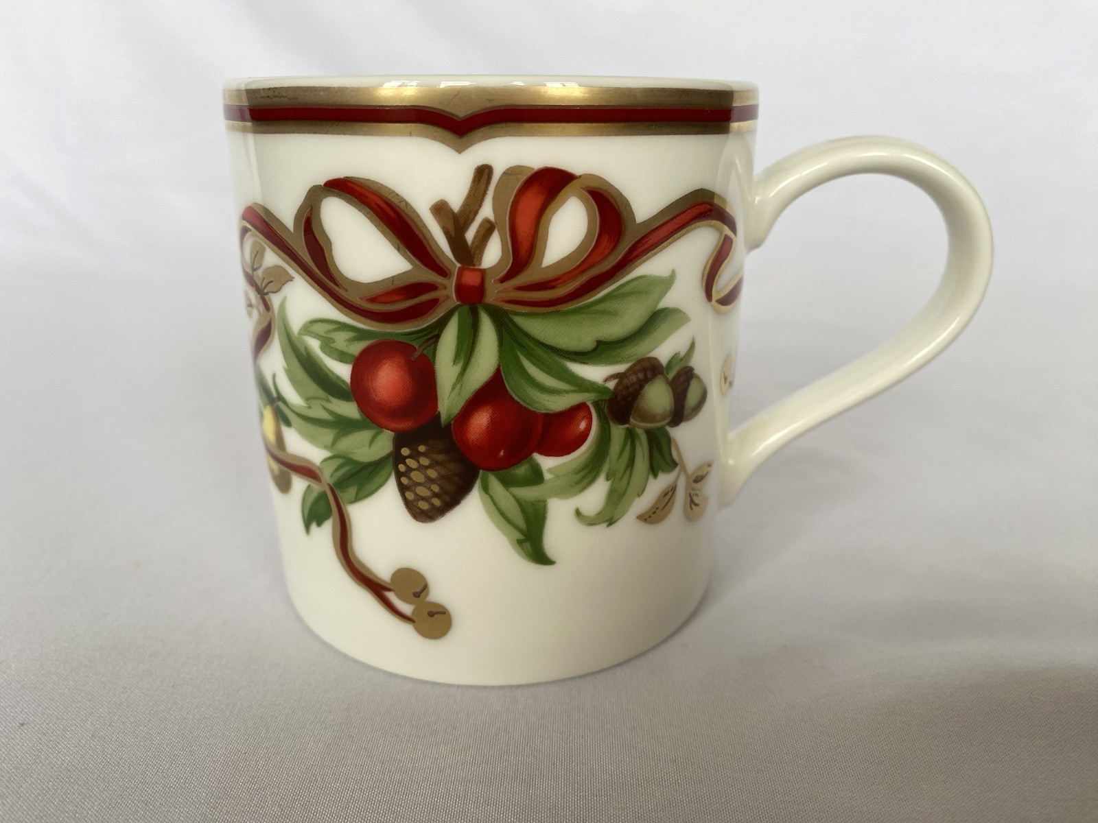 как выглядит Tiffany Co Holiday Porcelain Mug Japan Christmas Ribbon Berries - Excellent фото
