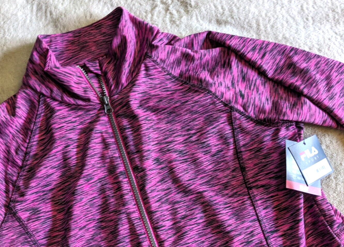 FILA Sport Tru-Dry Windbreaker Atheltic Top Womens L Black Pink Jog Running NWT