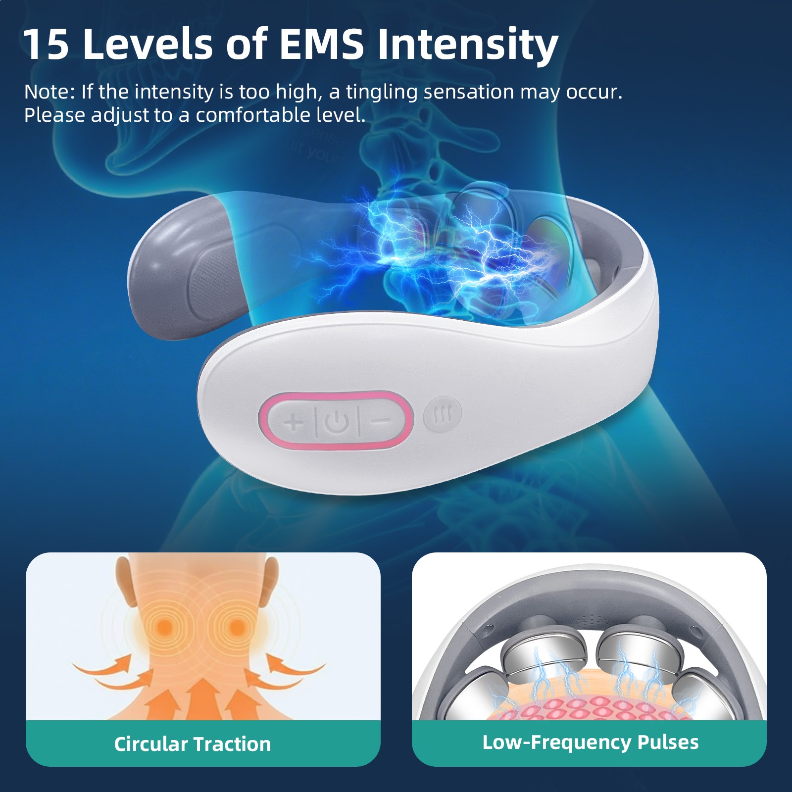 Cordless Neck Shoulder Massager EMS Pulse Heat Therapy Travel Muscle Relaxation