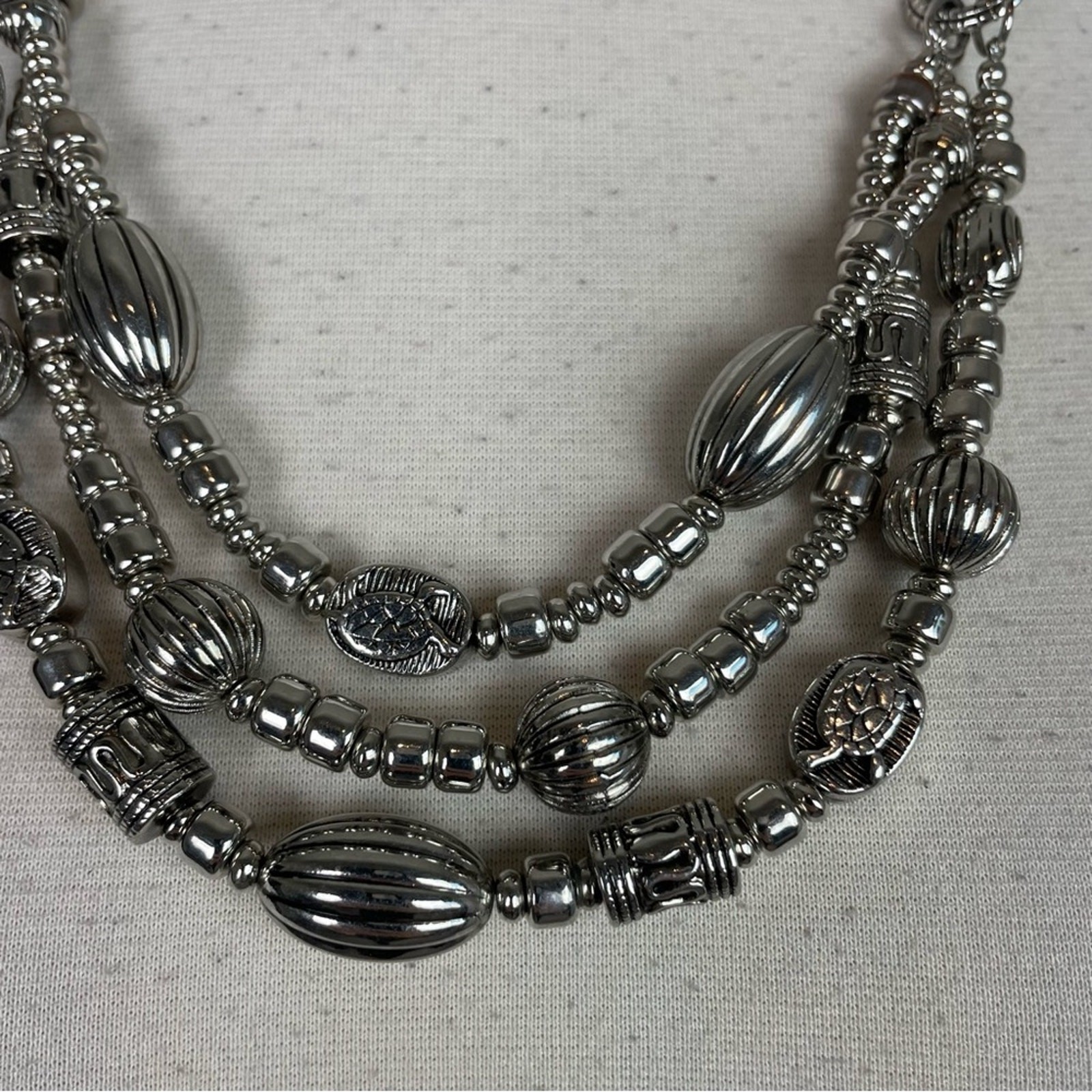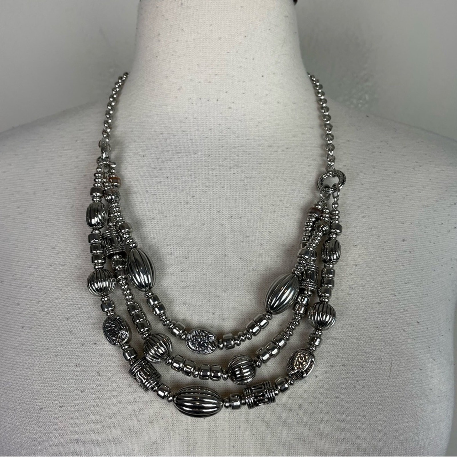 Chico's Silver Turtle Stamped Triple Strand Necklace
