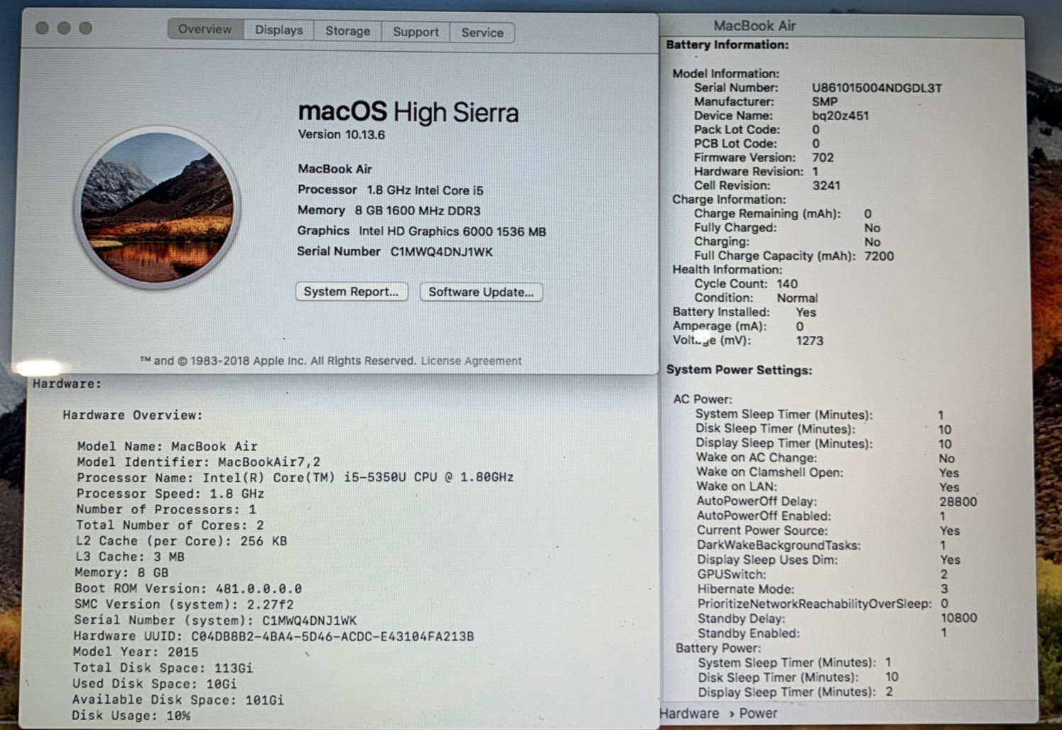 MacBook Air 13 2015 1.8GHz i5-5350U 8GB RAM 128GB SSD MacOS High Sierra