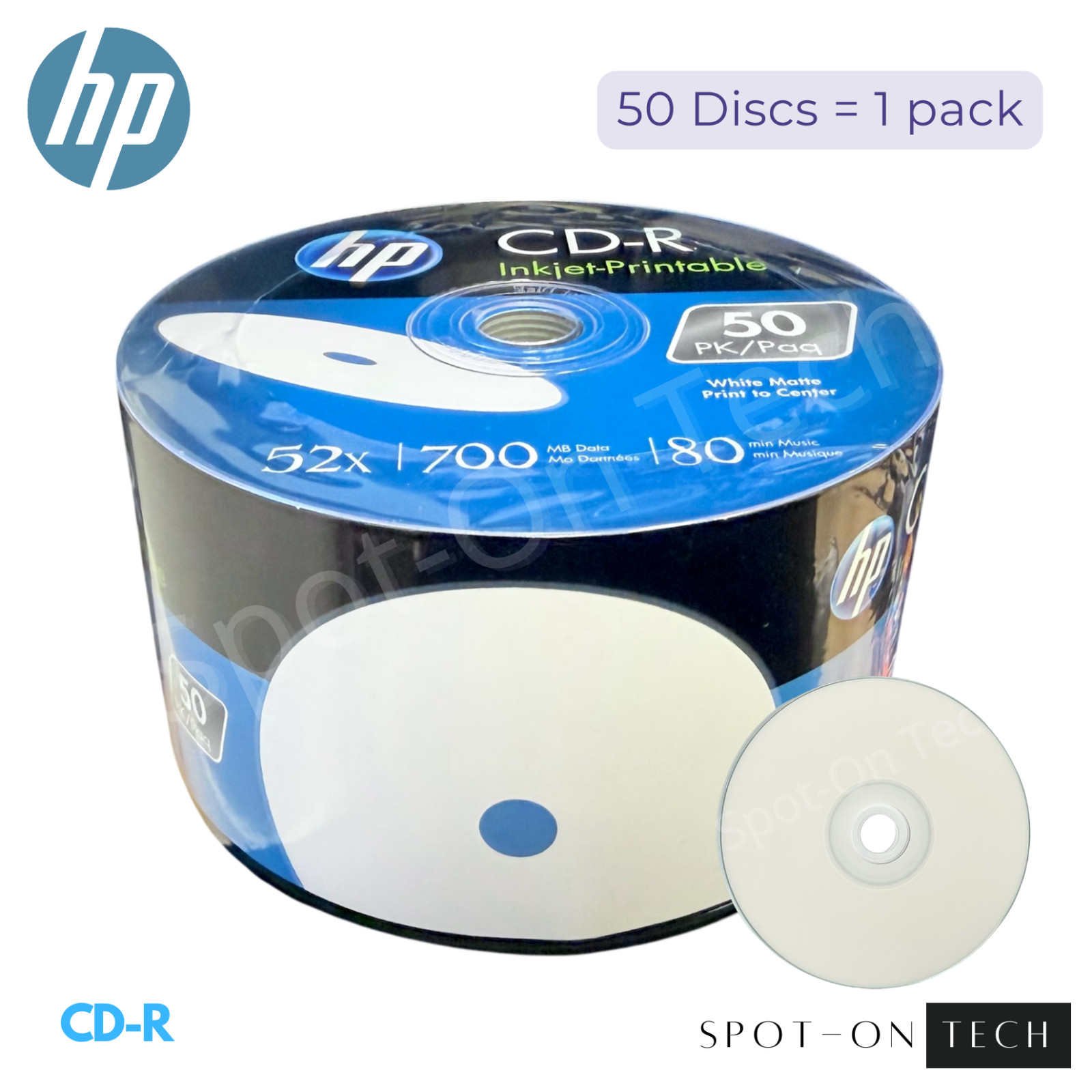 50 HP CD CD-R White Inkjet Printable 52X Blank media 700MB Disc 80min