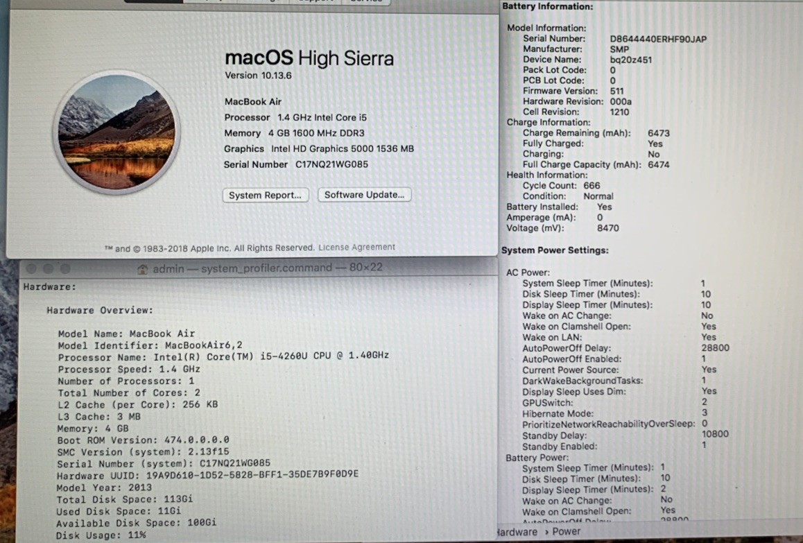 MacBook Air 13 2013 1.4GHz i5-4260U 4GB RAM 128GB SSD MacOS High Sierra