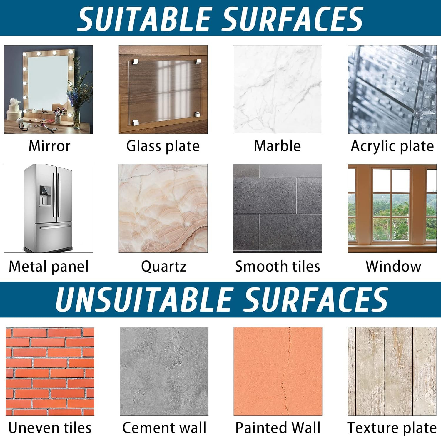 Surface Recommendation: Smooth and hard surfaces such as glass, tile, mirror, metal, stai