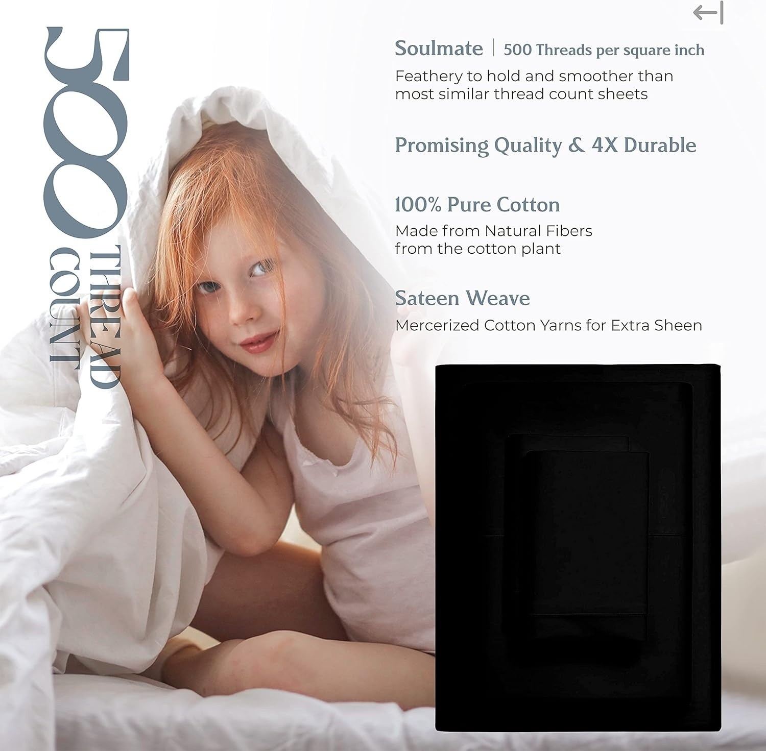 Linen 500 Thread Count 100 Cotton Sheets King Size Bed Set Fits 18 Mattress