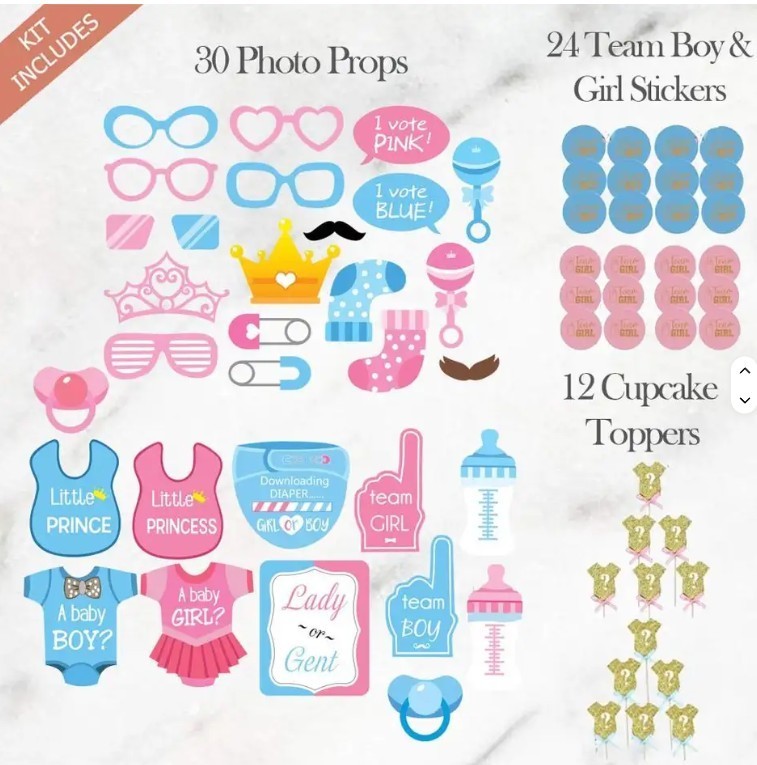 как выглядит 120 PCS Gender Reveal Party Decoration with Photo Props, 36 In Reveal Balloon фото