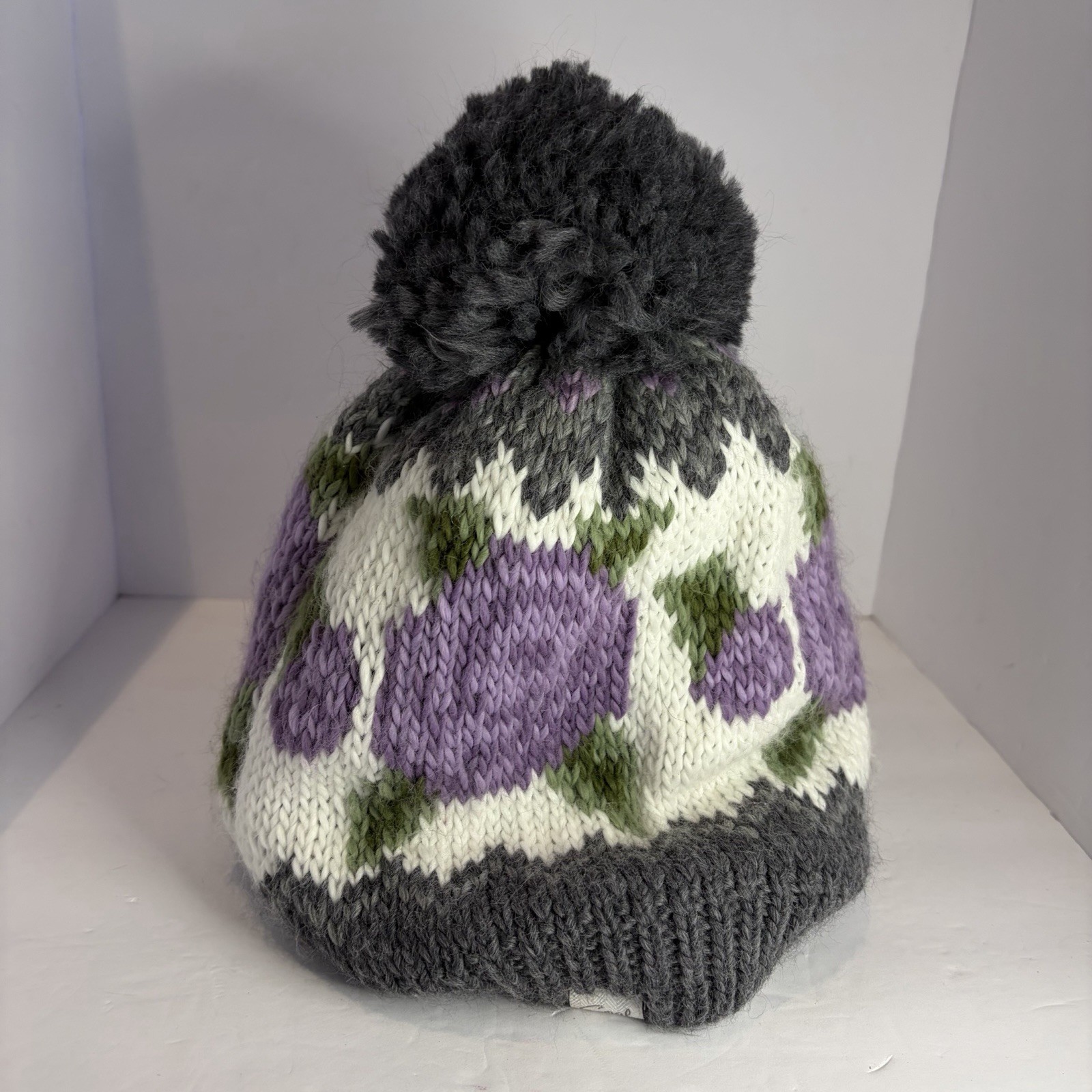 Coal Headwear Beanie Hat Knitted Fleece Lined Purple Roses Pom Pom