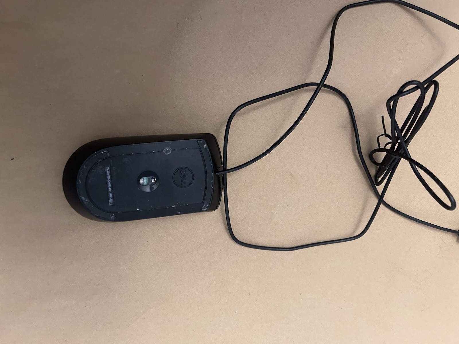 black Dell mouse with USB cord