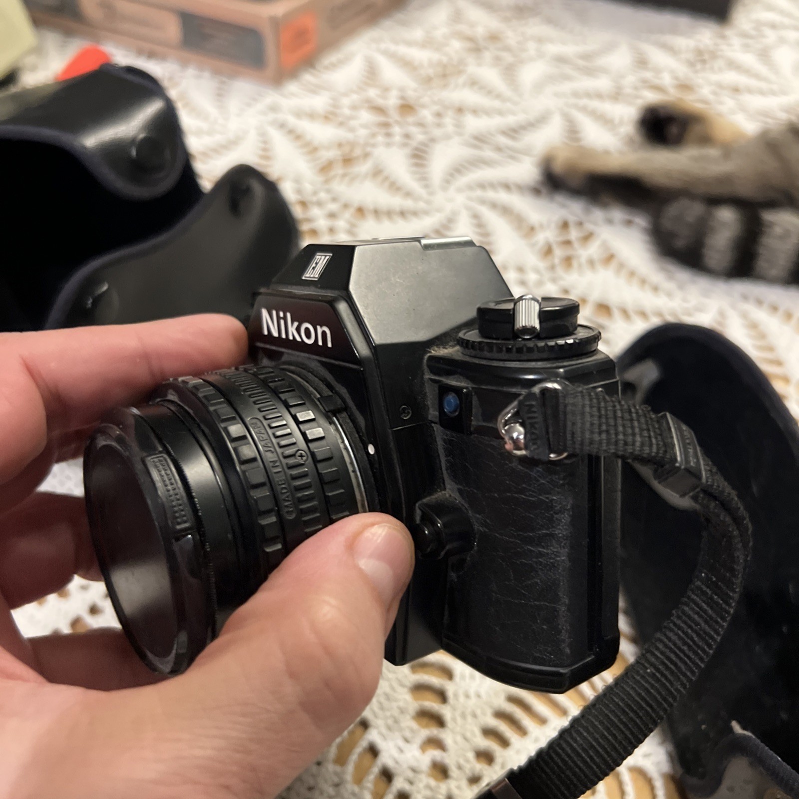 как выглядит Nikon EM 35mm SLR Film Camera 50mm f/1.8 Lens Tested With Leather Case EUC фото
