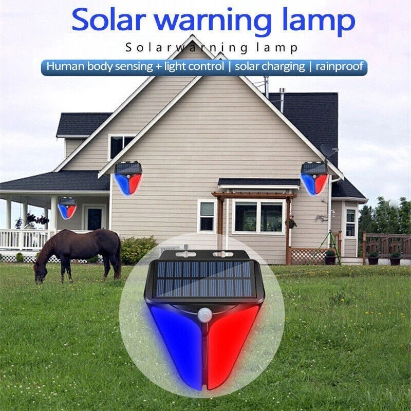 2x Solar Alarm Strobe Light Motion Sensor Lamp Waterproof Sound Security Outdoor