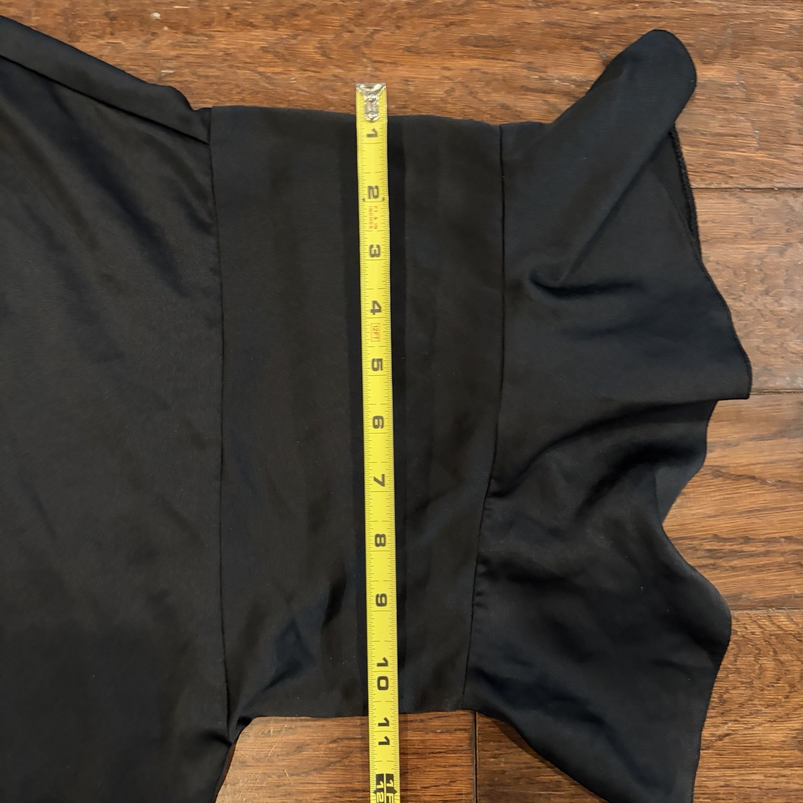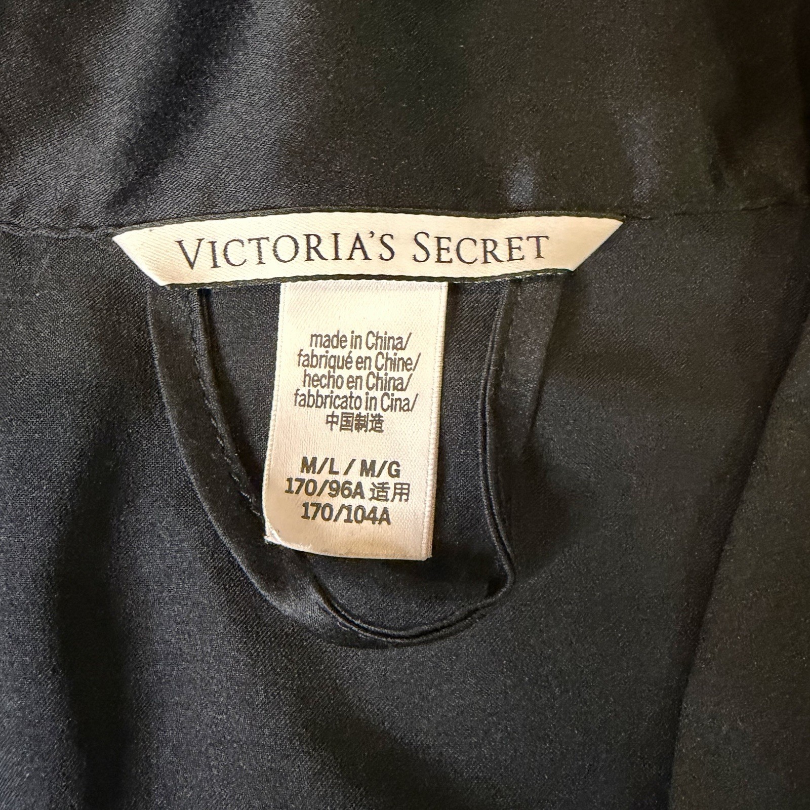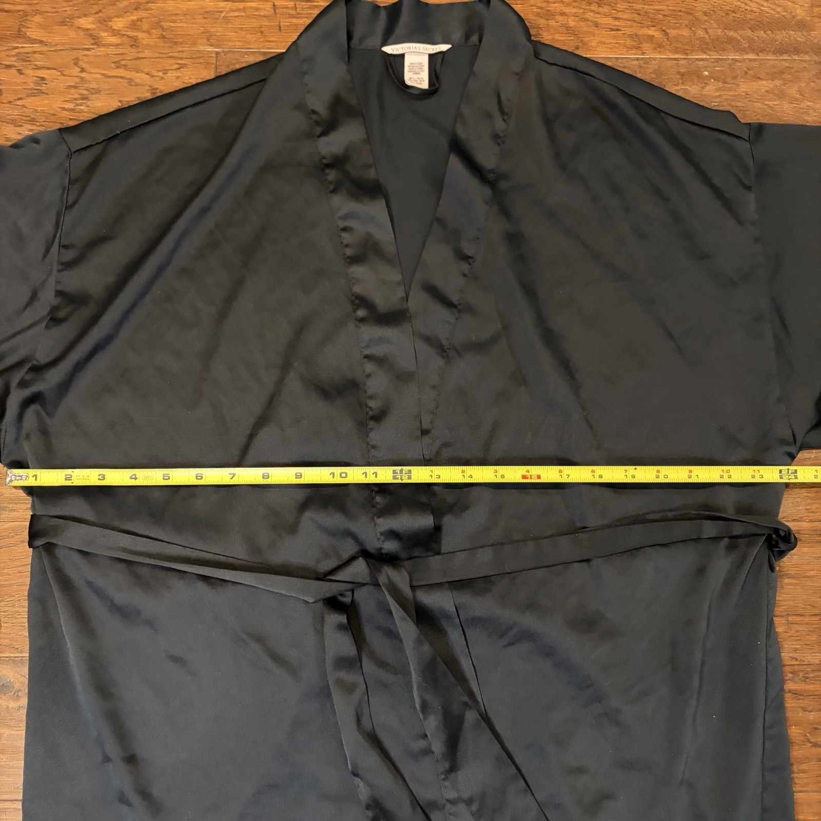 как выглядит VICTORIAS SECRET ROBE GEORGETTE FLOUNCE SHORT KIMONO RUFFLE SATIN SIZE M/L BLK фото