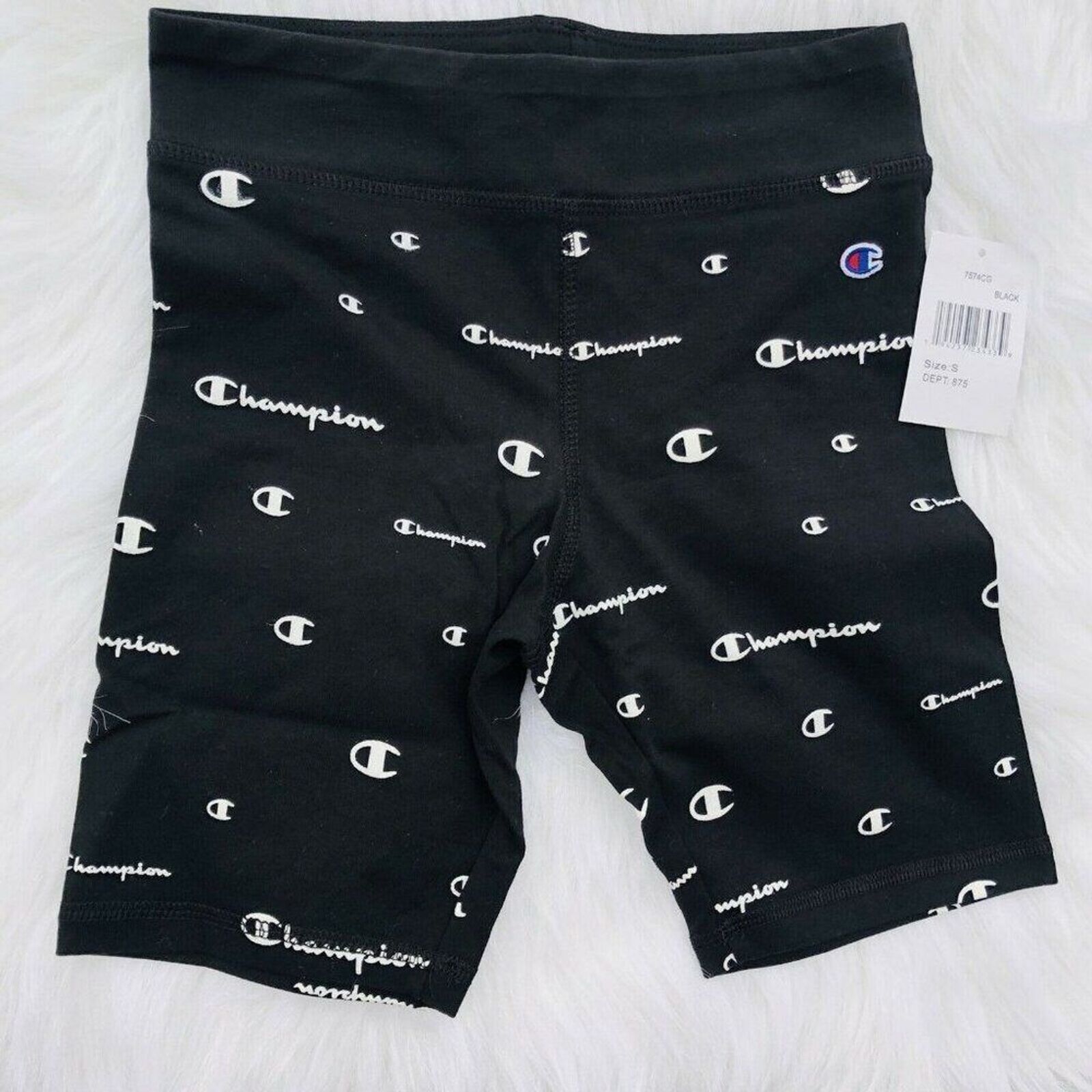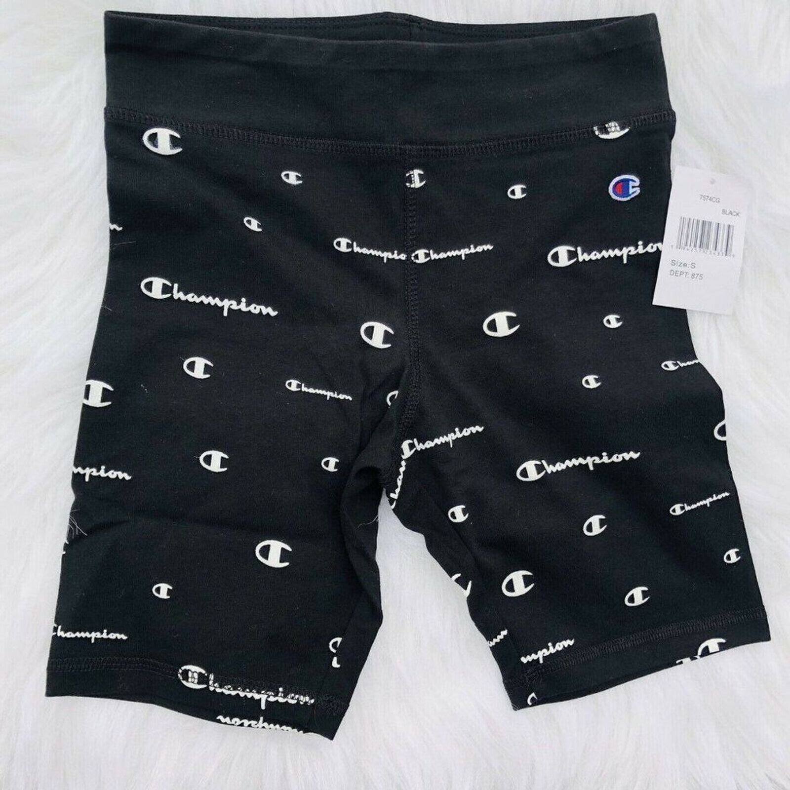 New Champion Bike Shorts Girls Big All Over Script Logo Athletics Running Sports