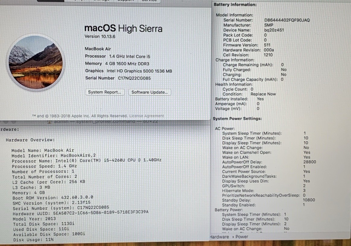 MacBook Air 13 2013 1.4GHz i5-4260U 4GB RAM 128GB SSD MacOS High Sierra
