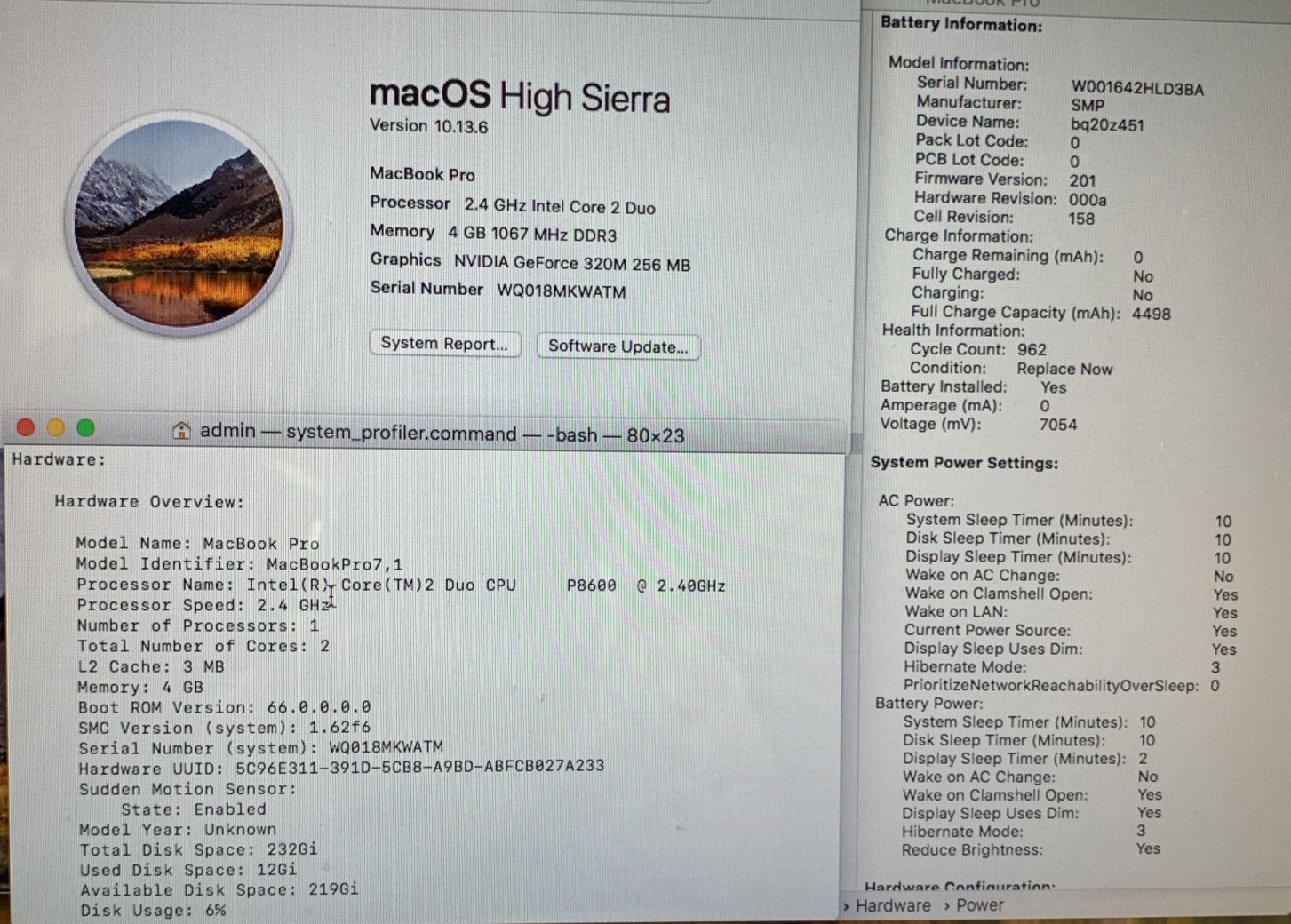 MacBook Pro 2010 13 2.4GHz Core2Duo 4GB RAM 256GB HDD MacOS High Sierra