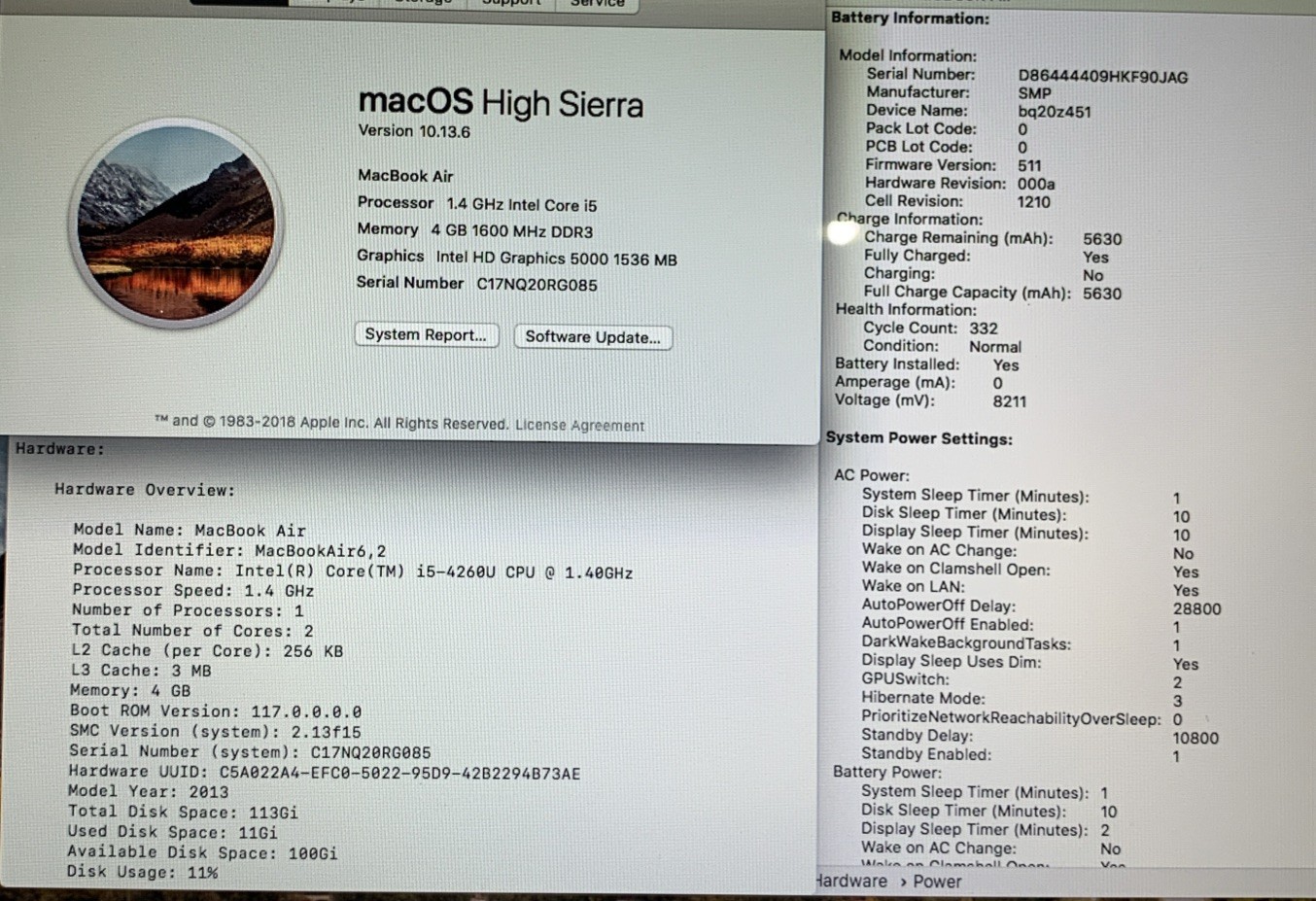 MacBook Air 11 2013 1.4GHz i5-4260U 128GB SSD MacOS High Sierra