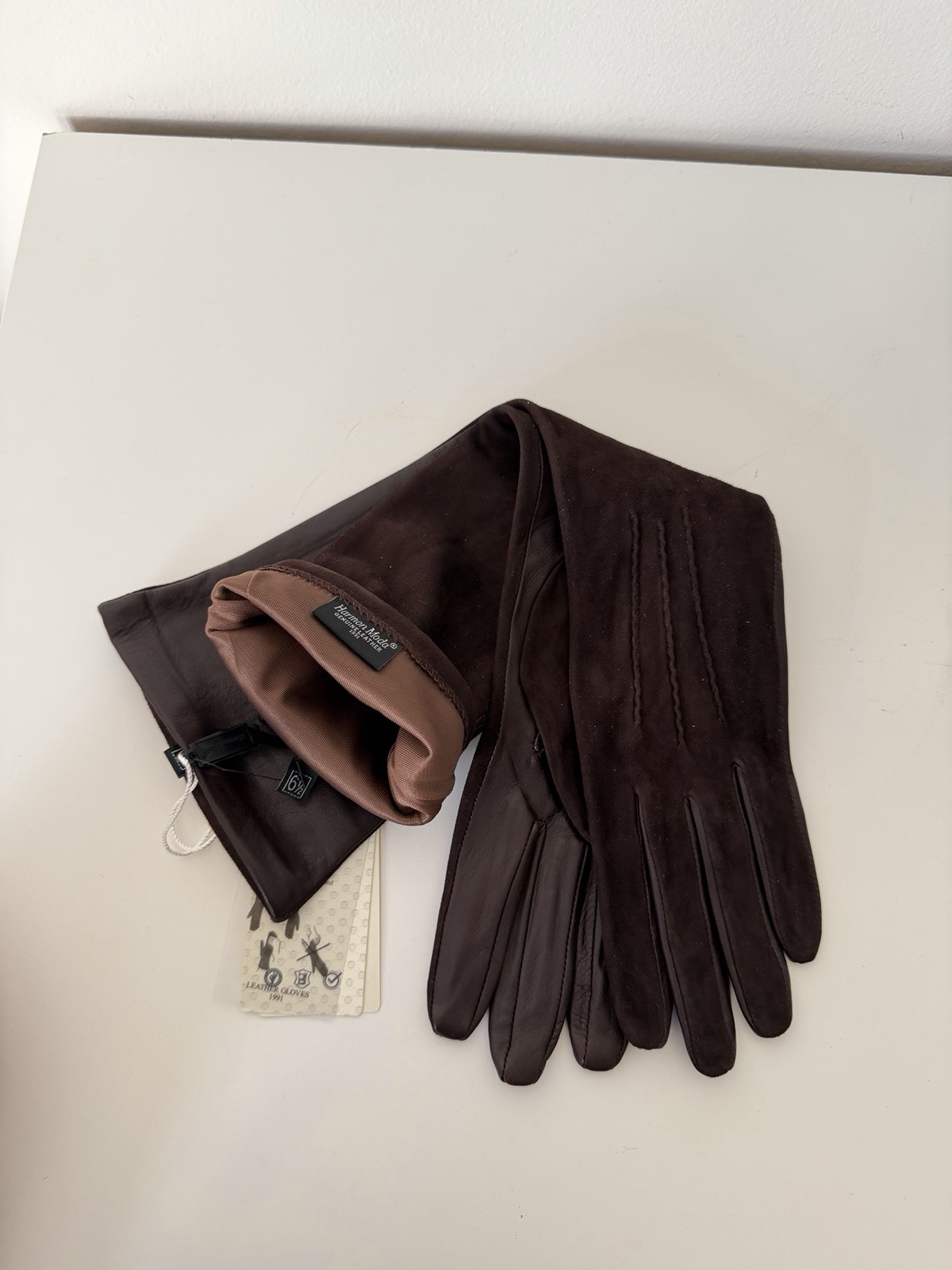 как выглядит Long Leather Suede Opera Gloves Brown Premium 6.5 фото