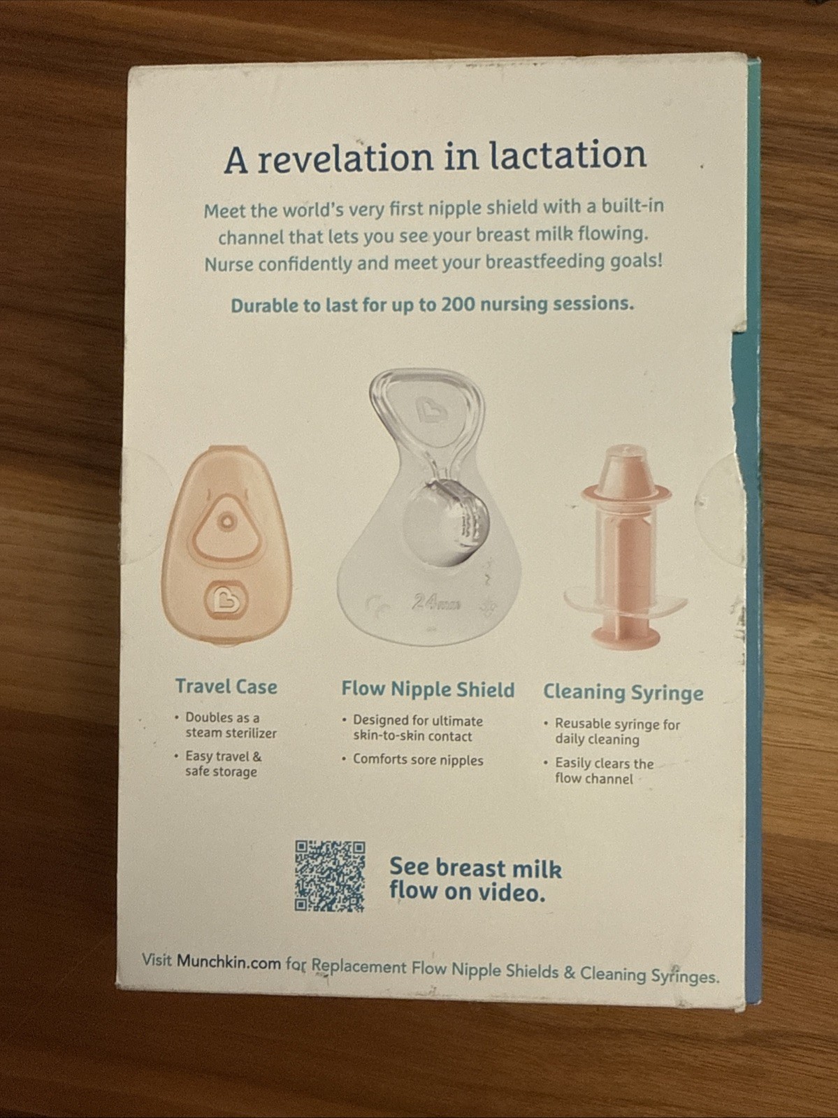 New Munchkin Flow Nipple Shield w/ See-Thru Channel, Size L, 24 mm