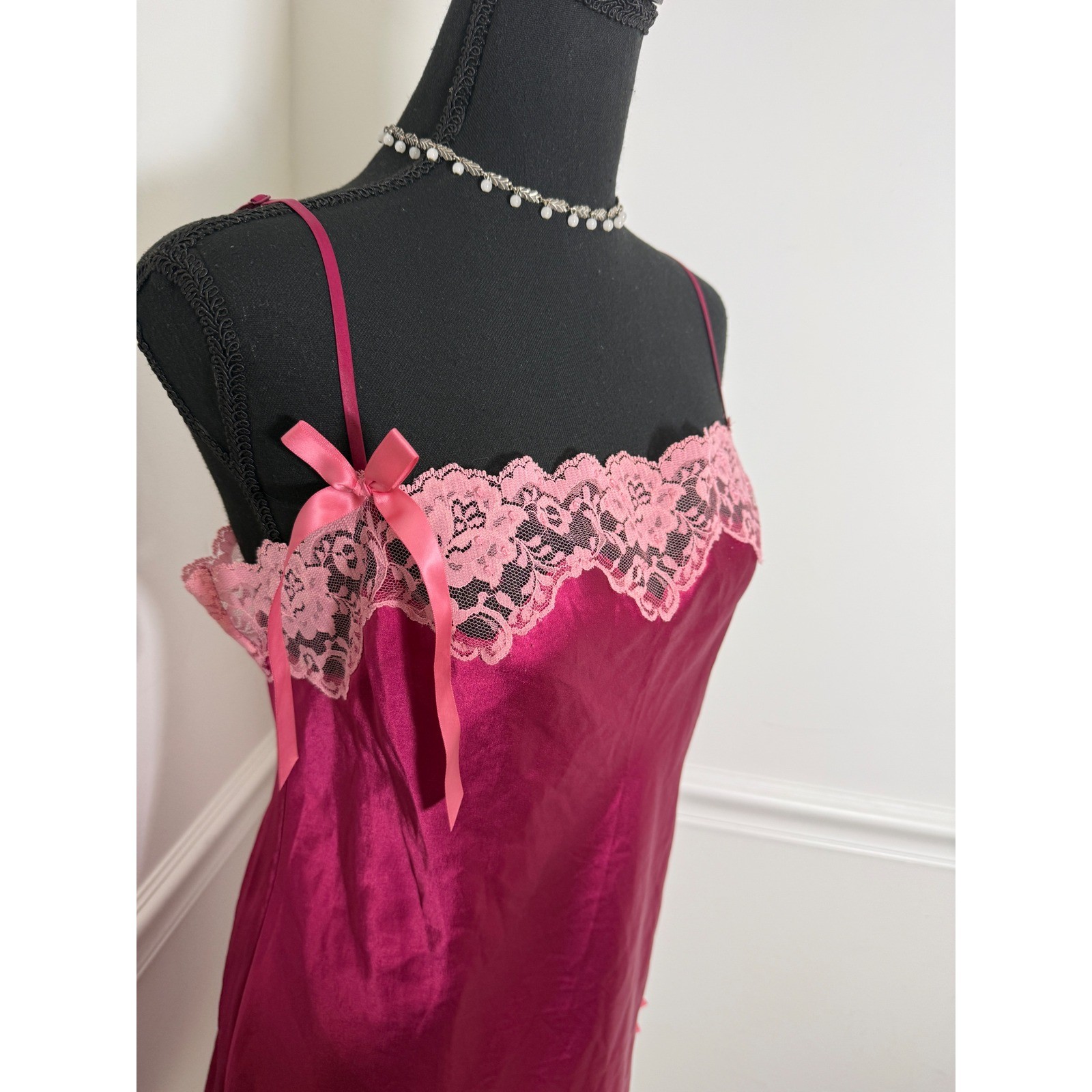 как выглядит Victorias Secret Angels Slip Dress Pink Lace Satin Mini Nightgown chemise M фото