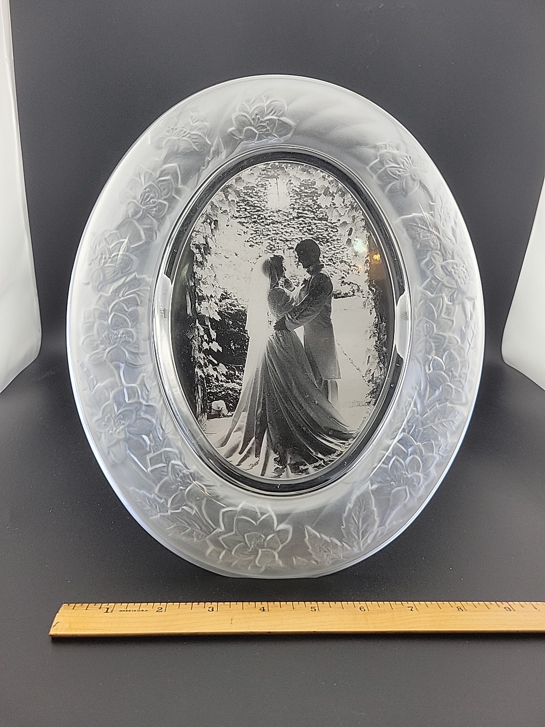 CRYSTAL CLEAR SIGNATURE Frosted PICTURE FRAME Floral Heavy Glass 11.5X 9.5