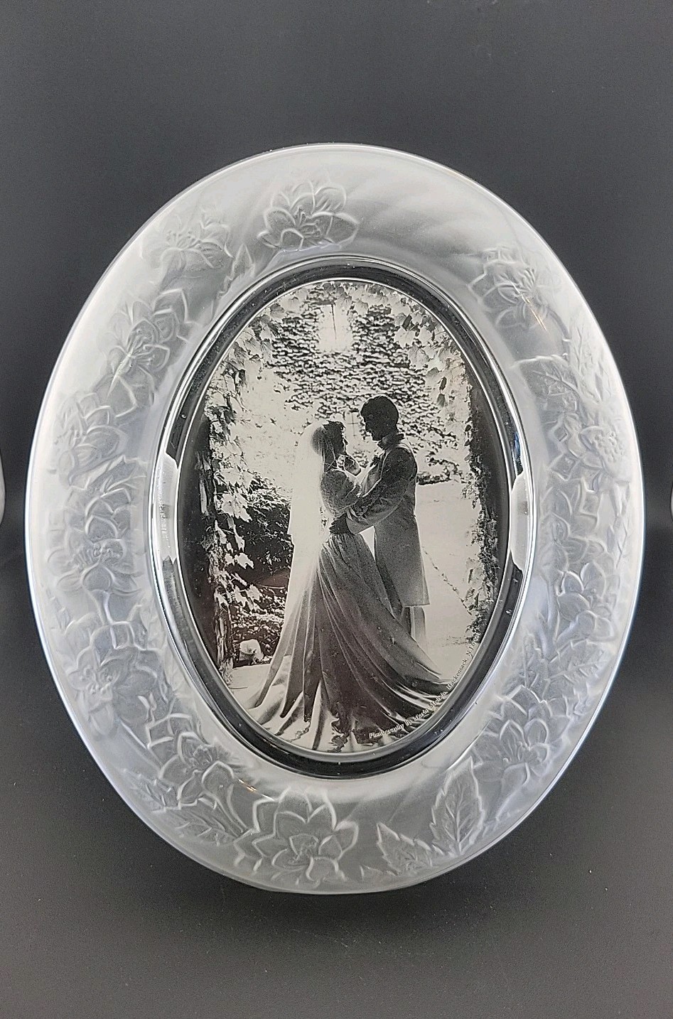 как выглядит CRYSTAL CLEAR SIGNATURE Frosted PICTURE FRAME Floral Heavy Glass 11.5"X 9.5" фото