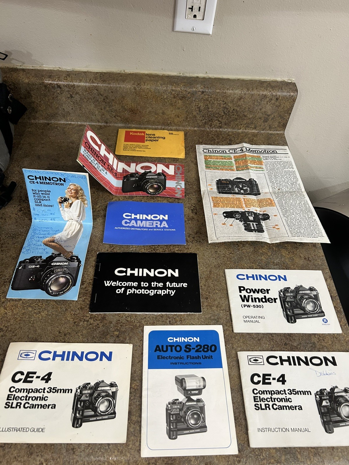 как выглядит Chinon CE-4 35mm SLR w/ 50mm 28mm, 3 Lenses Filters Strap Bag JAPAN, EXC фото