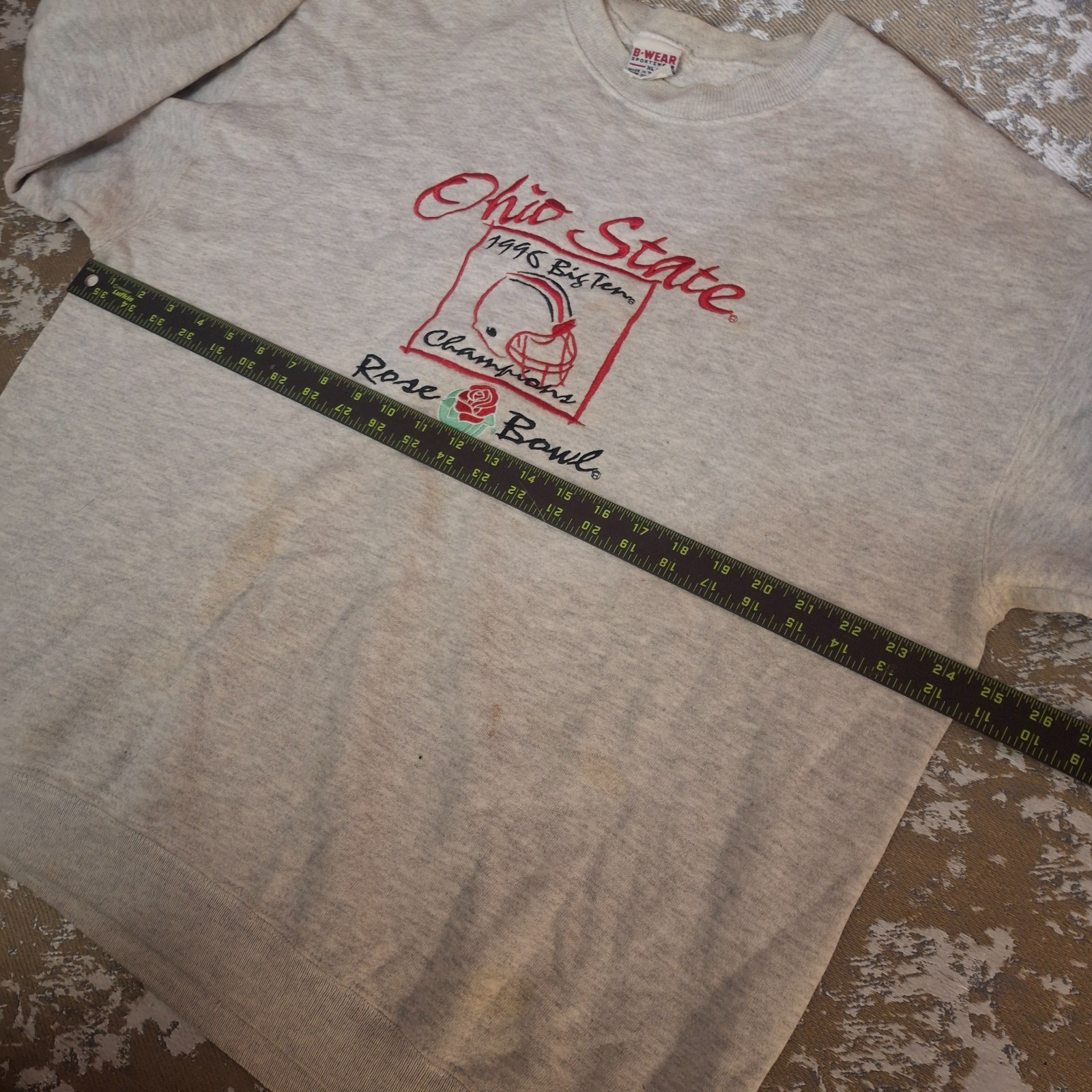 как выглядит Vintage Ohio State Buckeyes 1996 Rose Bowl Heather Gray Sweatshirt Men