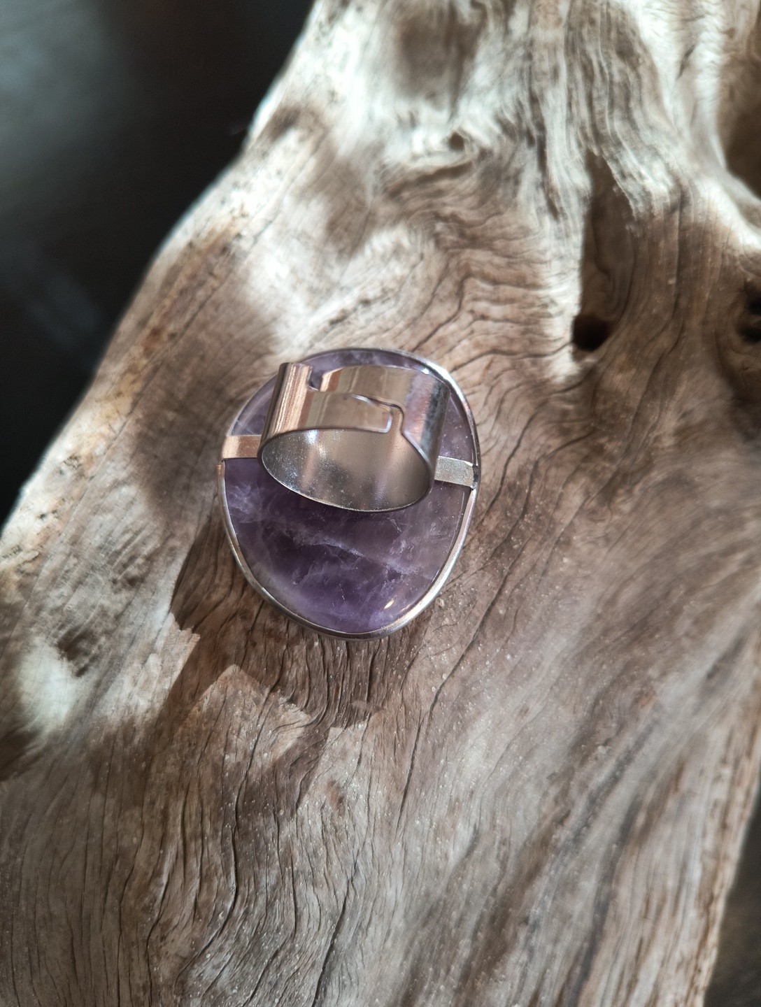 Handmade Amethyst Large Adjustable Ring Silver Tone