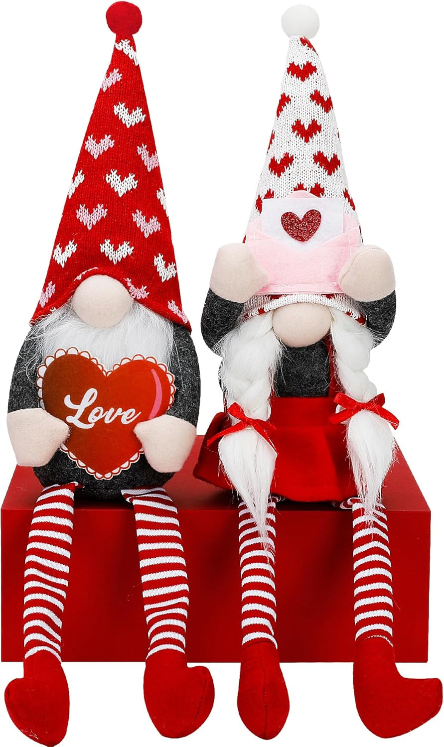 Valentine Day Decorations, 2 Pack Plush Valentine Gnomes Holding Love Sign, Hand