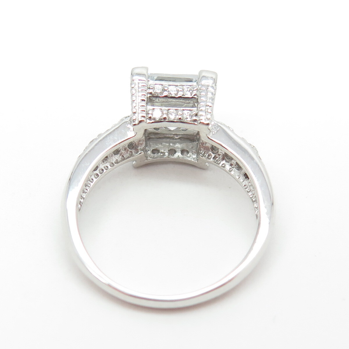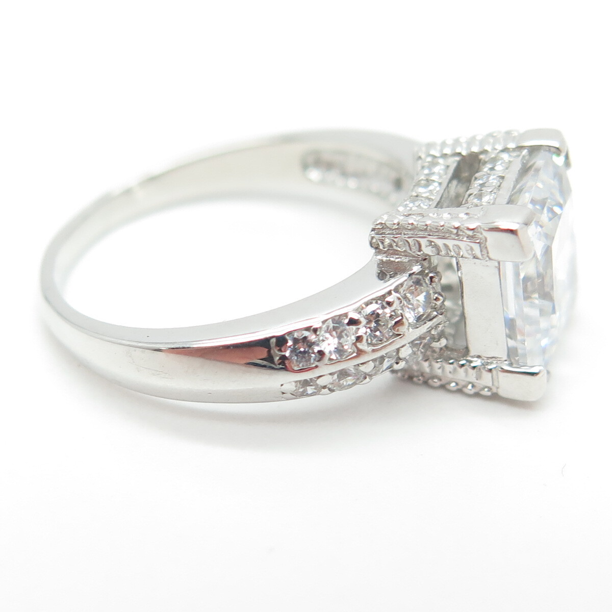925 Sterling Silver Princess Round-Cut C Z Engagement Ring Size 7