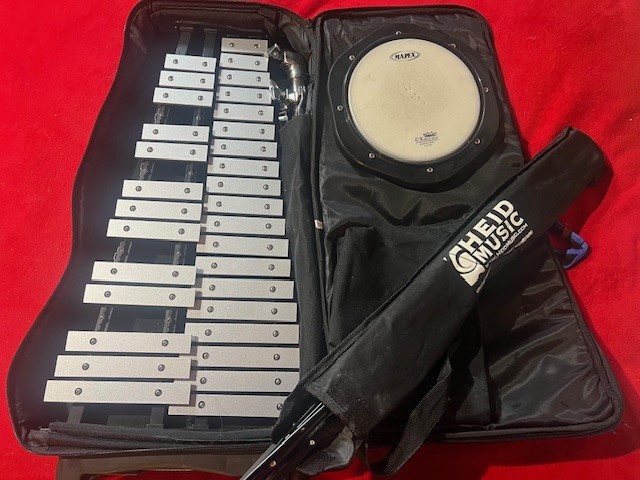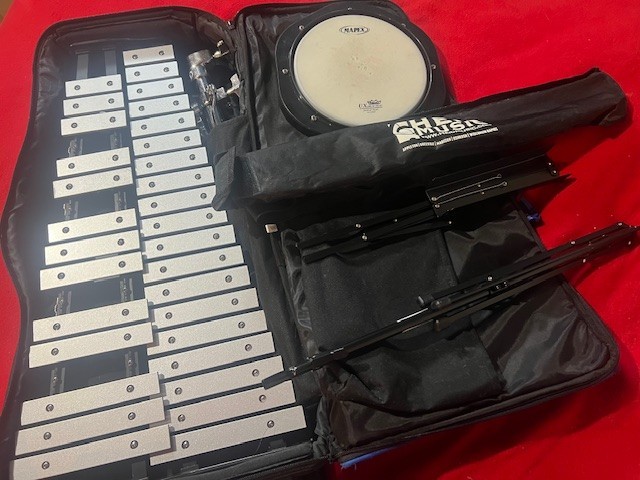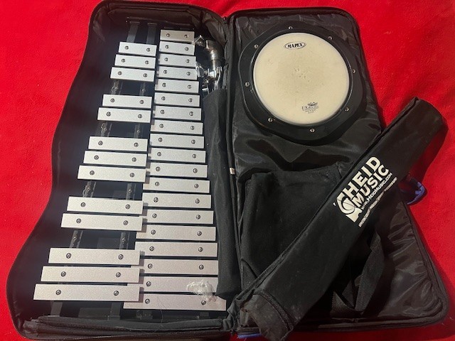 Mapex Bell Kit Glockenspiel Set w/ Rolling Case, Practice Pad Stand-Excellent