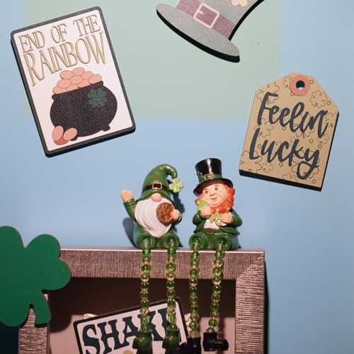 St Patricks Day Collectible Figurines - Resin Set of 2 Green Gnome Shelf