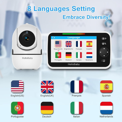 HelloBaby HB6550 5 Baby Monitor No WiFi Pan Tilt Zoom 30Hr Battery
