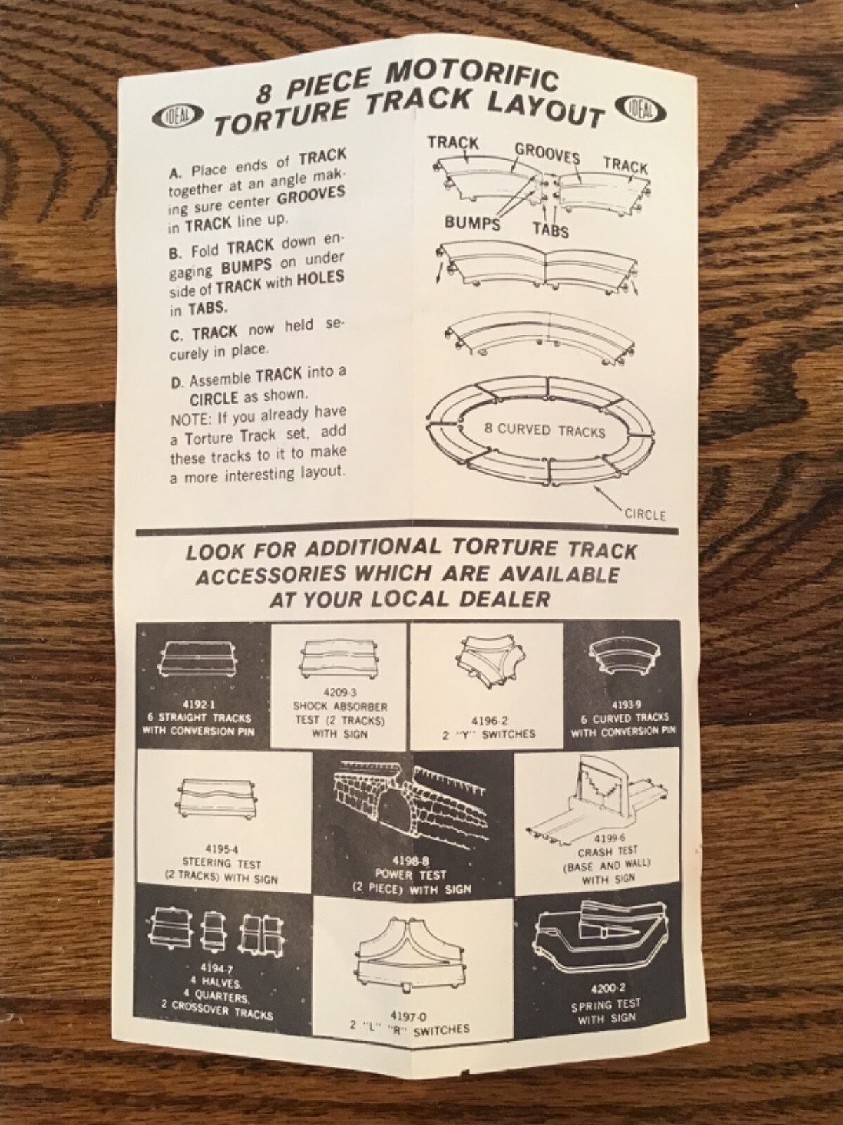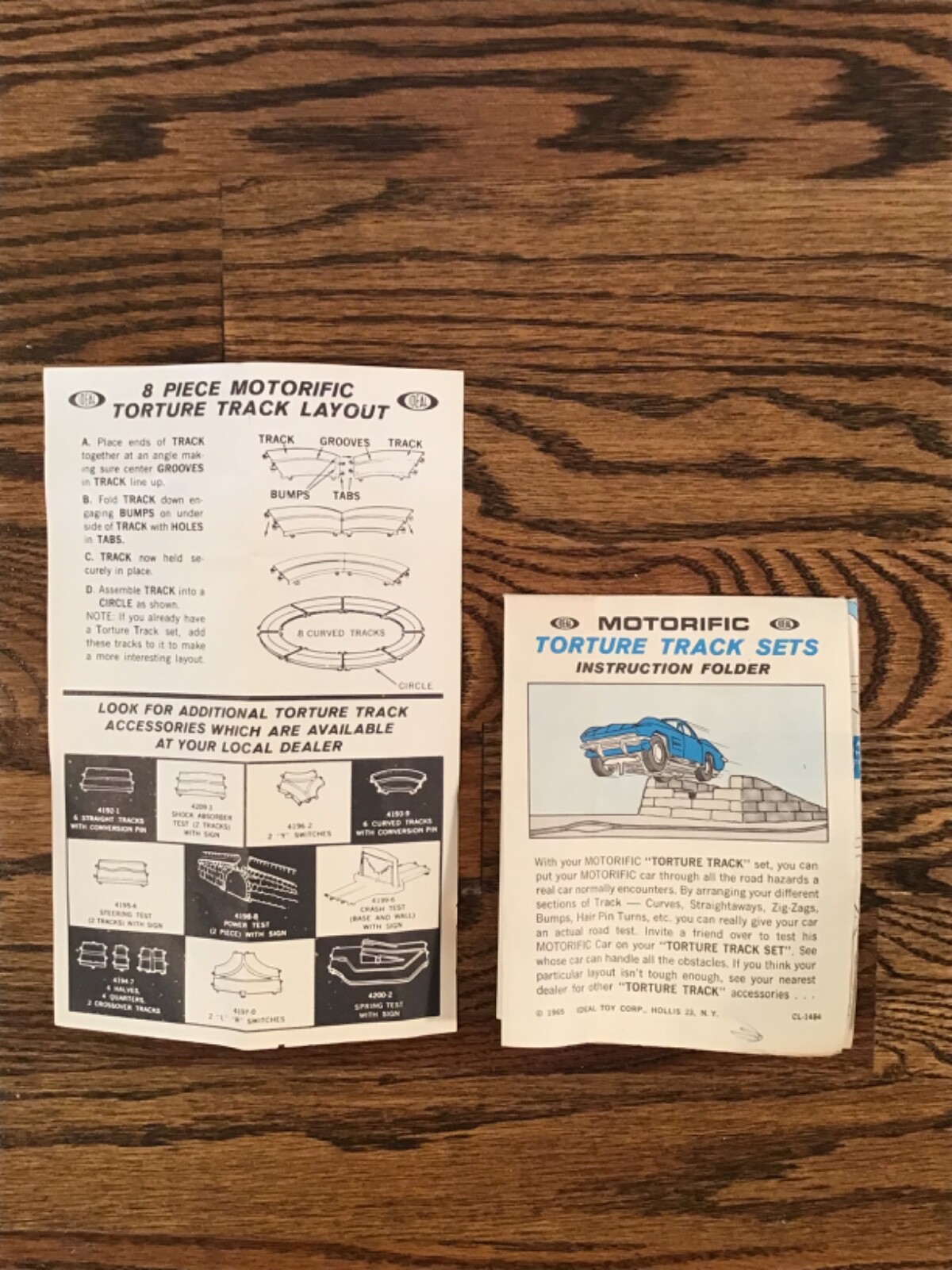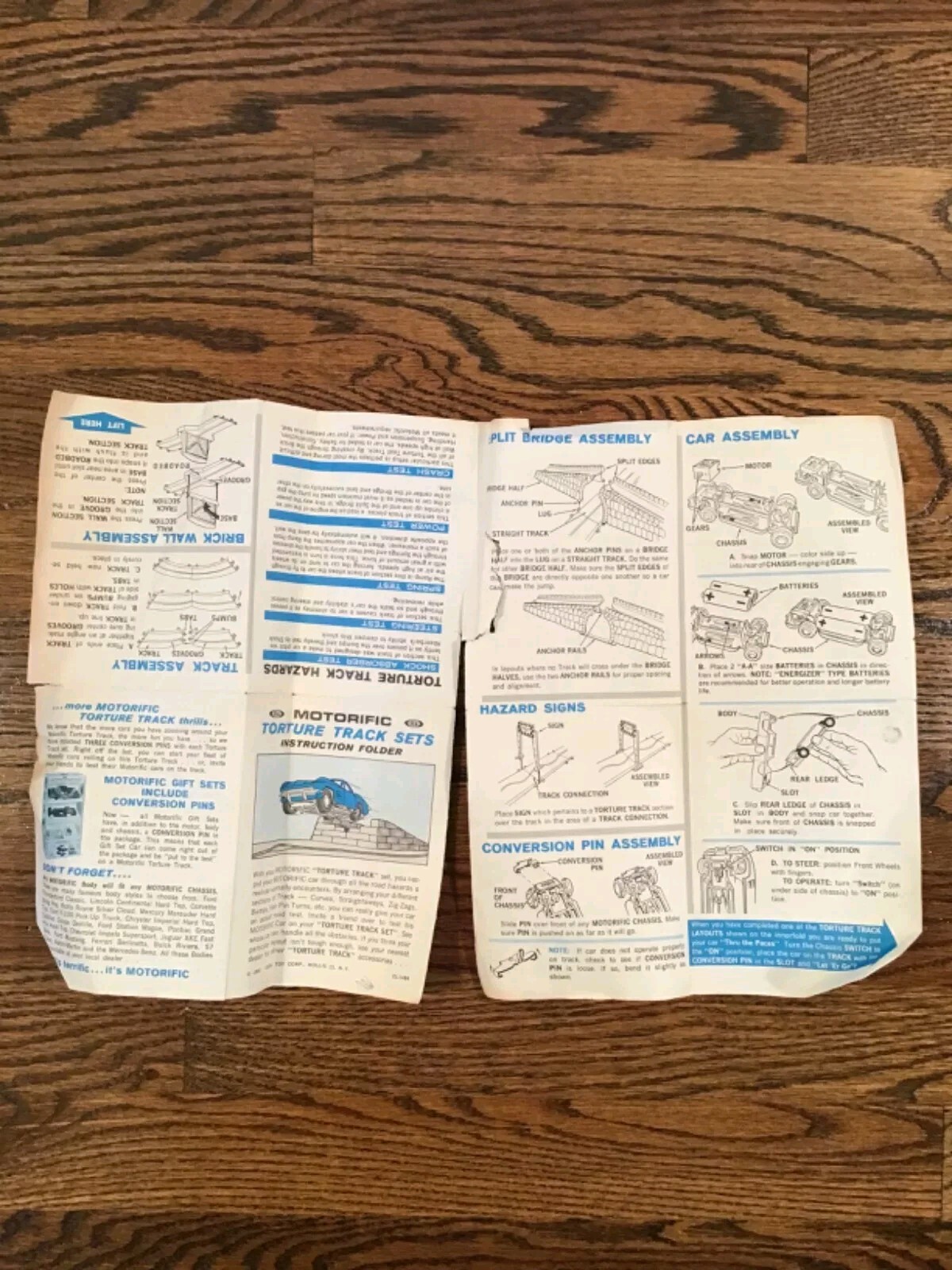 Vintage 1965 Ideal Motorific Torture Track Set Layout Instruction Sheet Folder