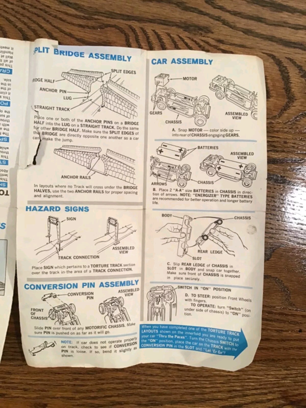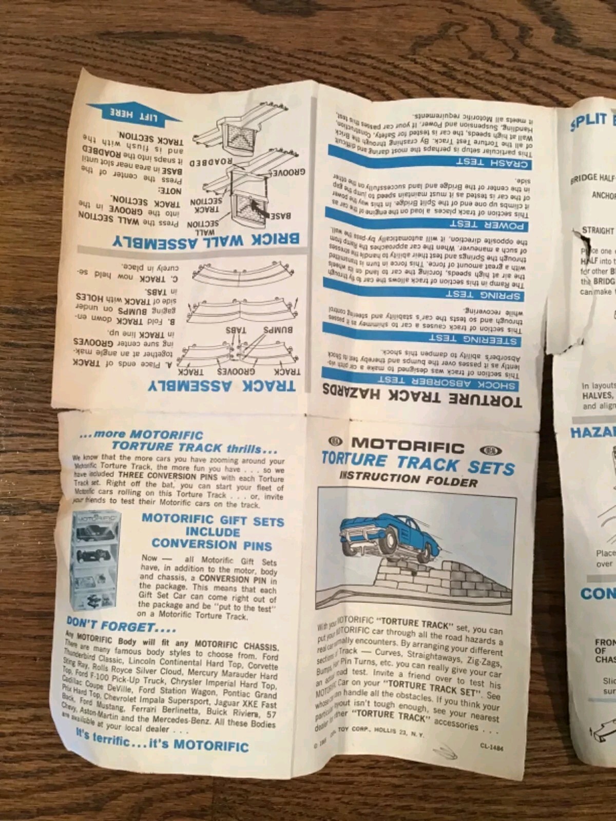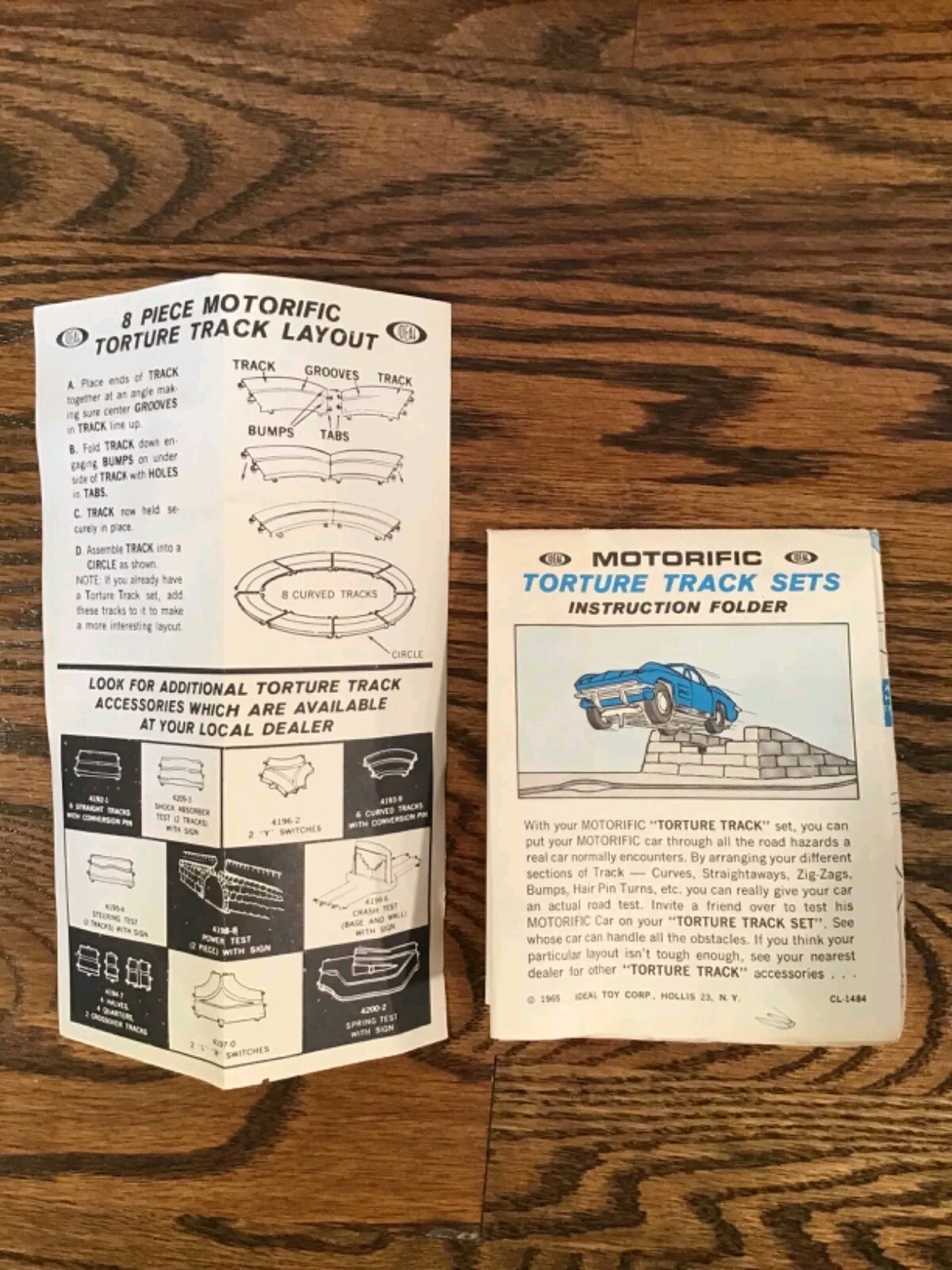 Vintage 1965 Ideal Motorific Torture Track Set Layout Instruction Sheet Folder