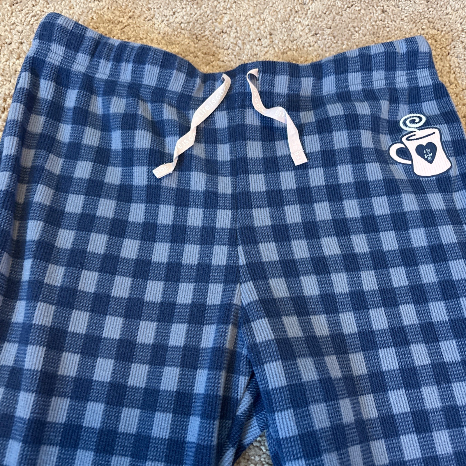 как выглядит Life Is Good Woman s Sleep Pants Blue Plaid Size M Coffee Cup Logo Drawstring фото