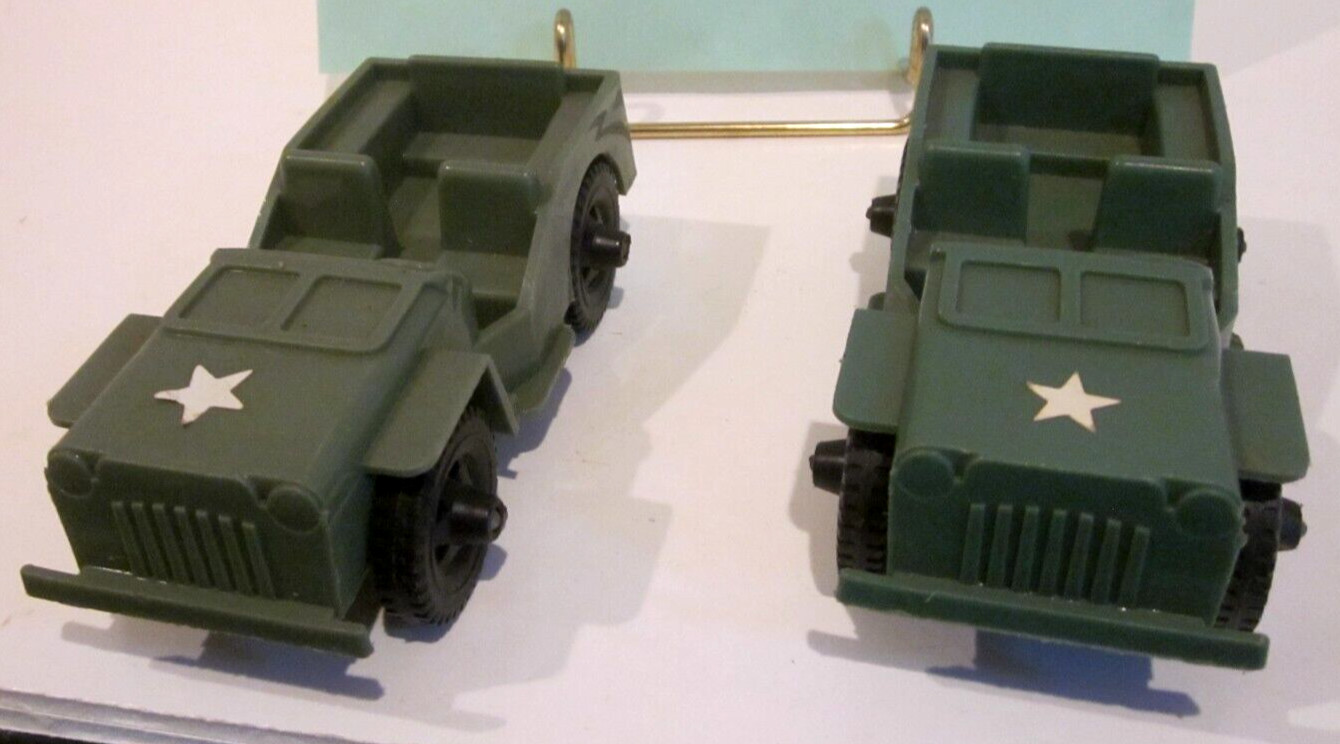 VTG TIM MEE TOYS US ARMY JEEPS LOT 1960'S TWO HERO 5 JEEPS OD FOREST GREEN