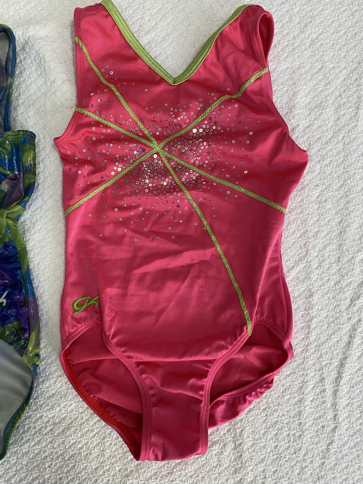 как выглядит Lot of 2 GK Elite Gymnastics Leotards - Girls Adult Small AS - Pink Swirl фото