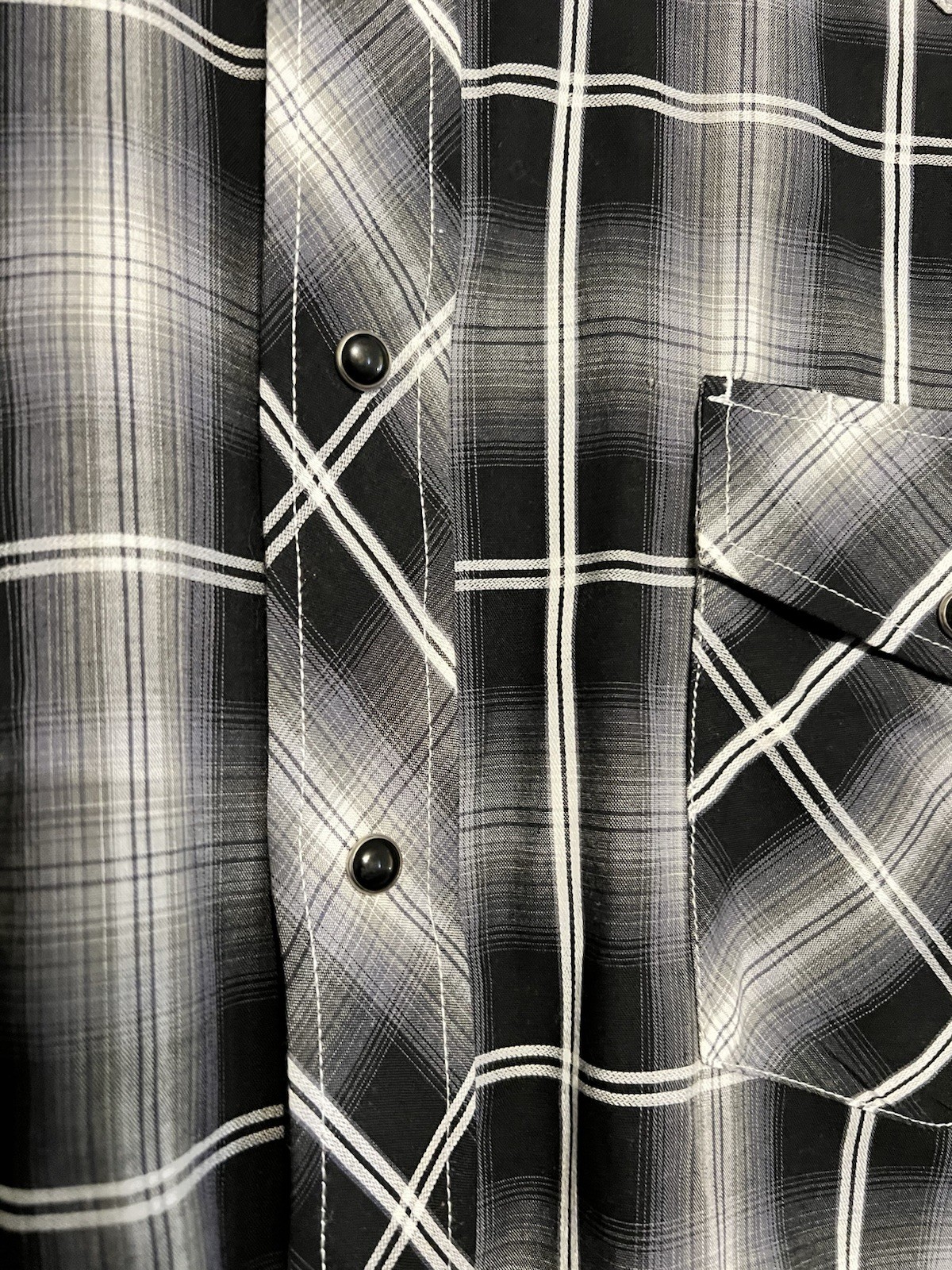как выглядит Roper Plaid Long Sleeve ShirtWestern Cowboy Men Size XL Pearl Snap Gray Black фото