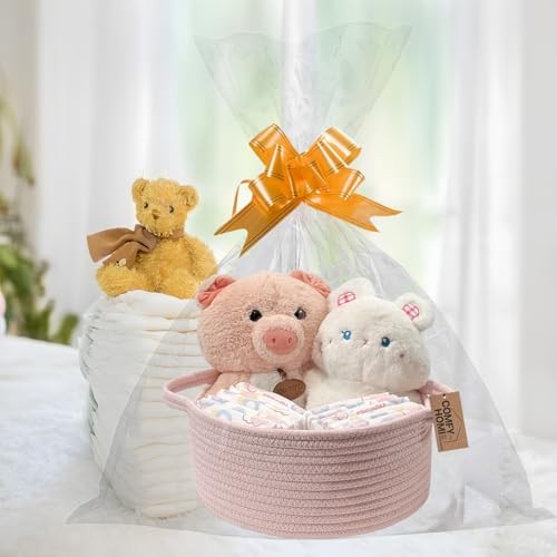 COMFY HOMI Small Woven Gift Baskets with Handles, Gift Bags and Ribbons - pink