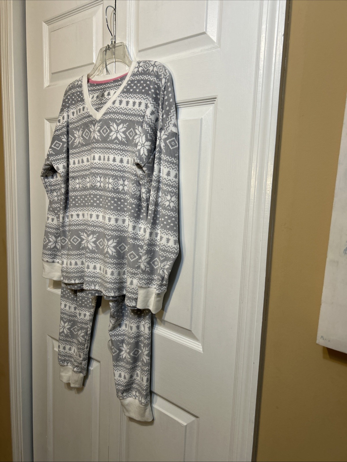 NWT Cuddl Duds Pullover Top Jogger Pj Set Size M Medium Grey Snowflake Print