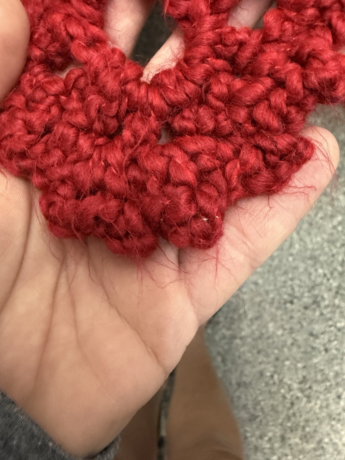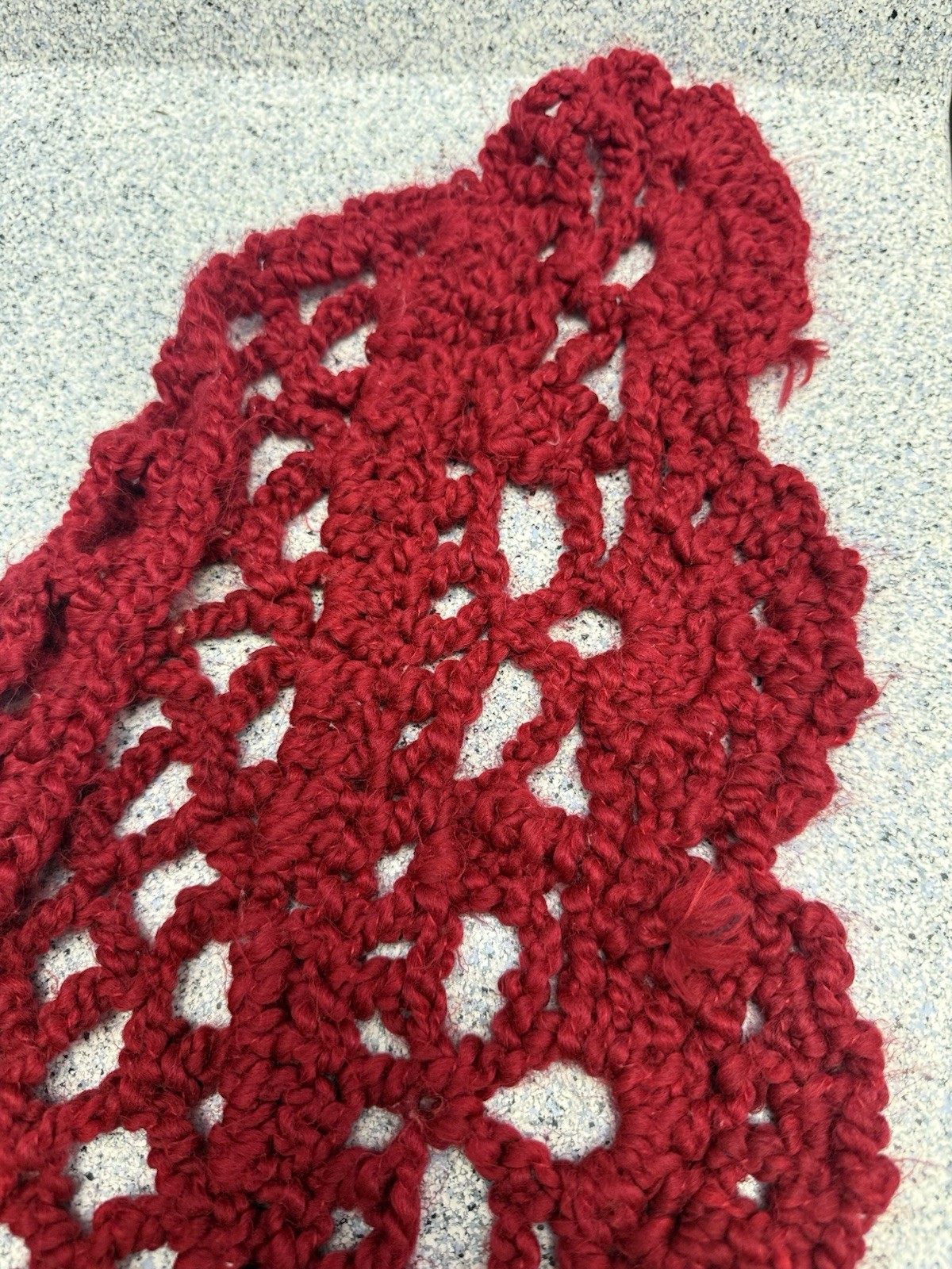 Vintage Boho Burgundy Crochet Triangle Shawl Large Lace Wrap Scalloped Edge